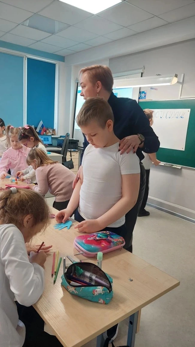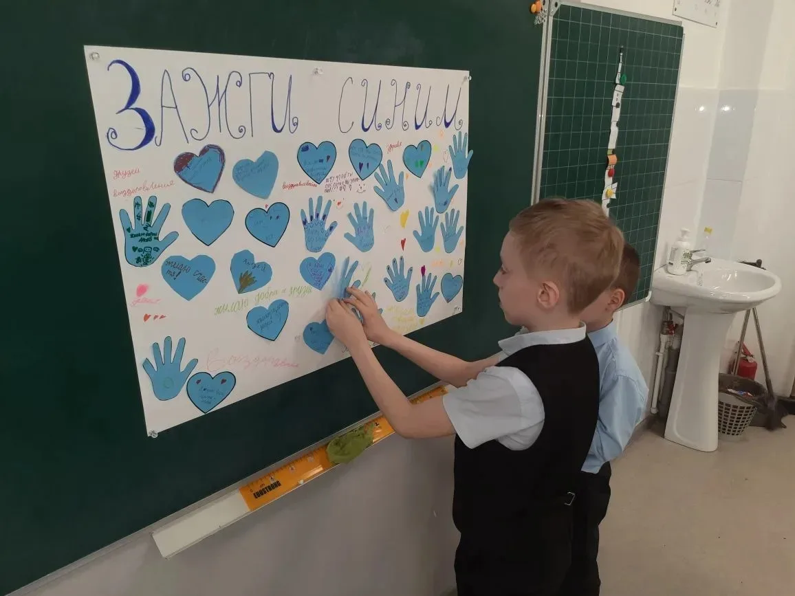 💙Далее просматривали мультфильмы: "Ёжик" и "Что такое аутизм?". Совместно делали плакат с ладошками и сердечками синего цвета,на которых ученики написали свои пожелания детям с РАС и их родителям.Детям очень понравилось мероприятия и все дружно решили,что будут помогать особенным детям и дружить с ними.