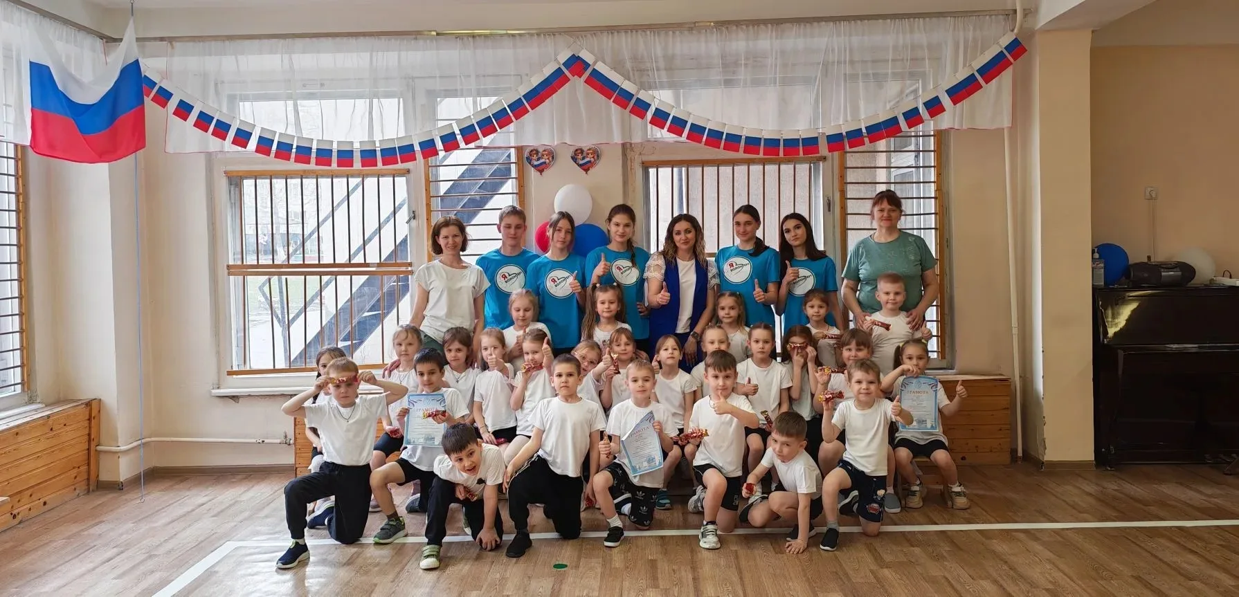 Дети бегали, смеялись, поддерживали друг друга. А волонтёры не просто судили — они подбадривали, помогали и верили в каждую команду. После подведения итогов все дошколята получили угощения, а завершилось всё совместной фотосессией.