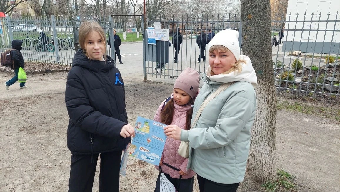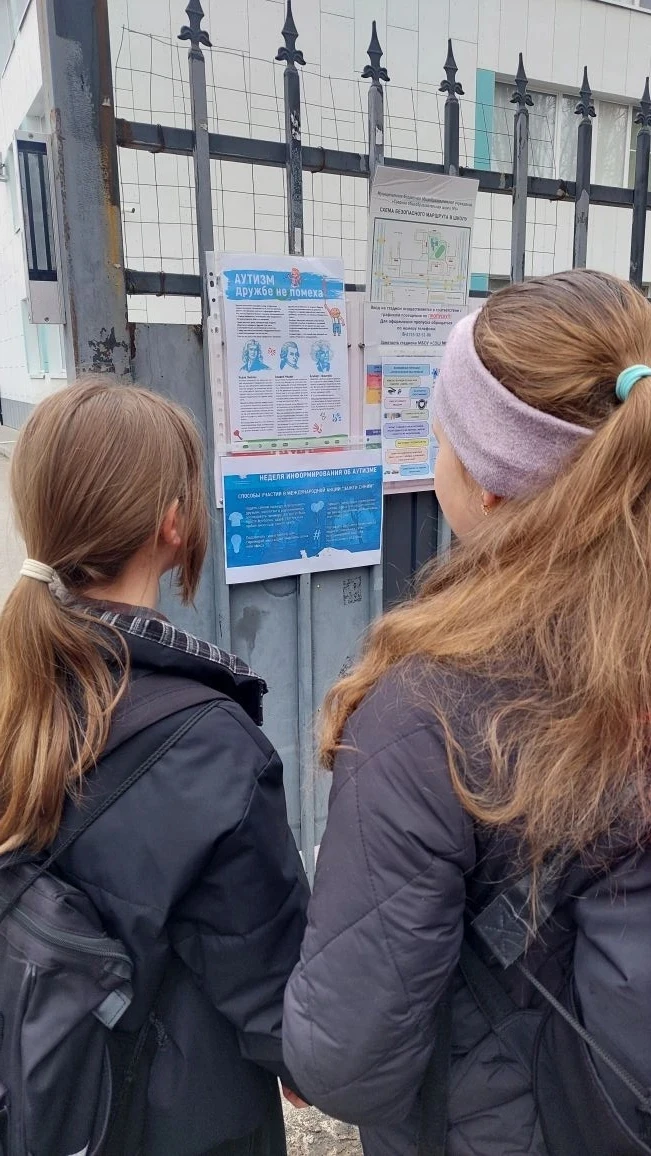 Волонтёры раздавали буклеты с информацией о расстройстве аутистического спектра прохожим и родителями,приводящих детей в школе.Так же буклеты распространялись среди учащихся и педагогов.Информация о РАС транслировалась на экране для общего просмотра.
