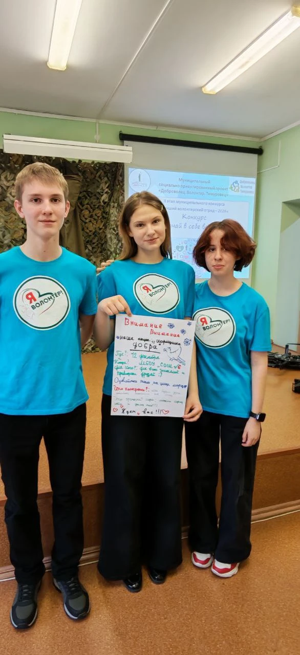 Подведены итоги заключительного III этапа муниципального конкурса «Лучший волонтерский отряд — 2026» — конкурса видеорепортажей «Для добра преграды НЕТ». Наш волонтерский отряд «Инициатива» в составе: Лапченкова София, Дворников Лев, 8А, Курчина Эвелина, 7А, Тараненко Кира, Шаповалова Ирина, Шестакова Ярослава, 7Б, руководитель Лобынцева М. Н., вновь доказал, что мы — команда профессионалов своего дела!