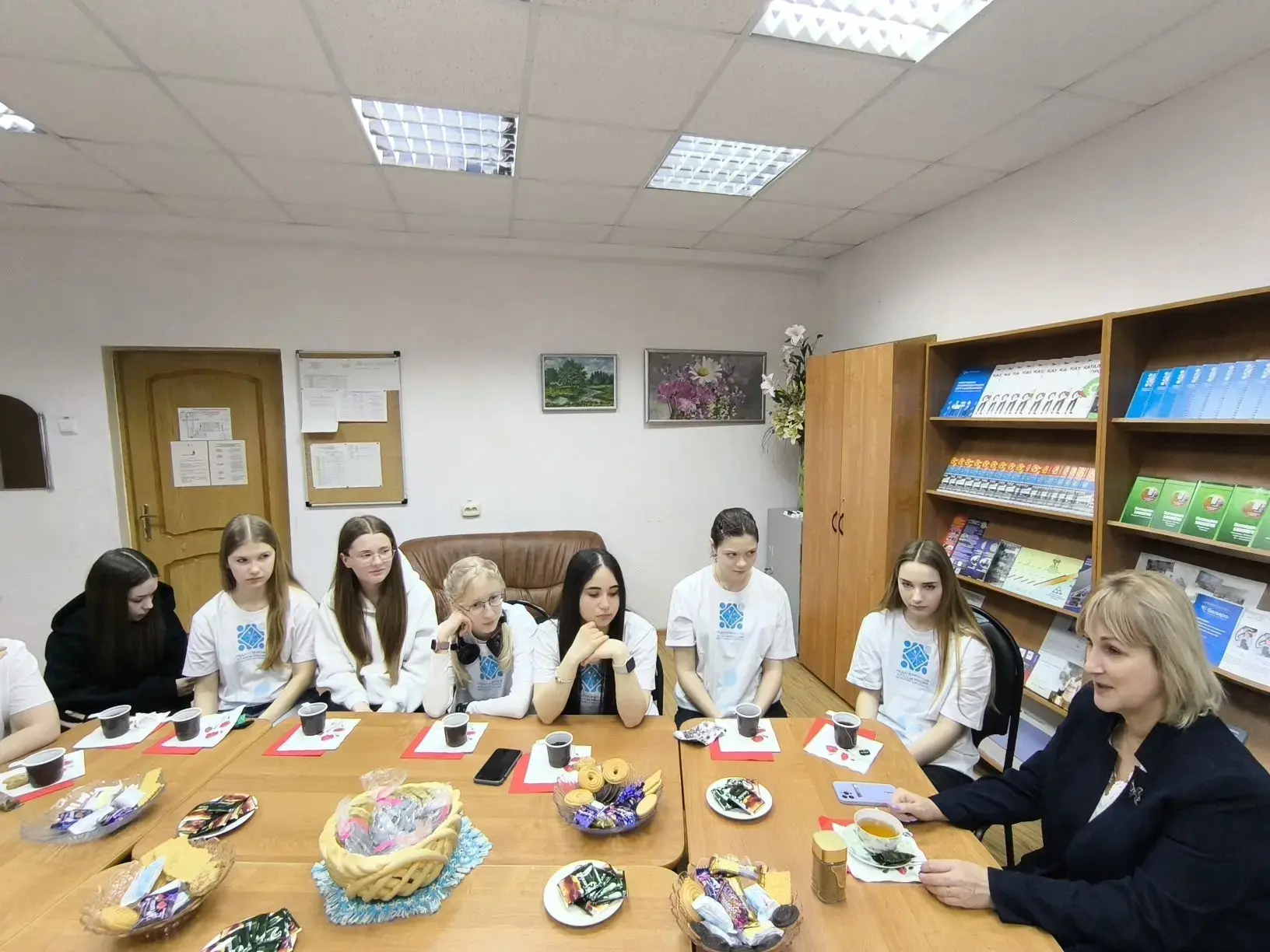 🪑 Уютно расставленные столы 🍵 Горячий чай и печенье 🎵 Негромкая музыка 💬 И живой разговор между обучающимися 10 класса и директором гимназии.