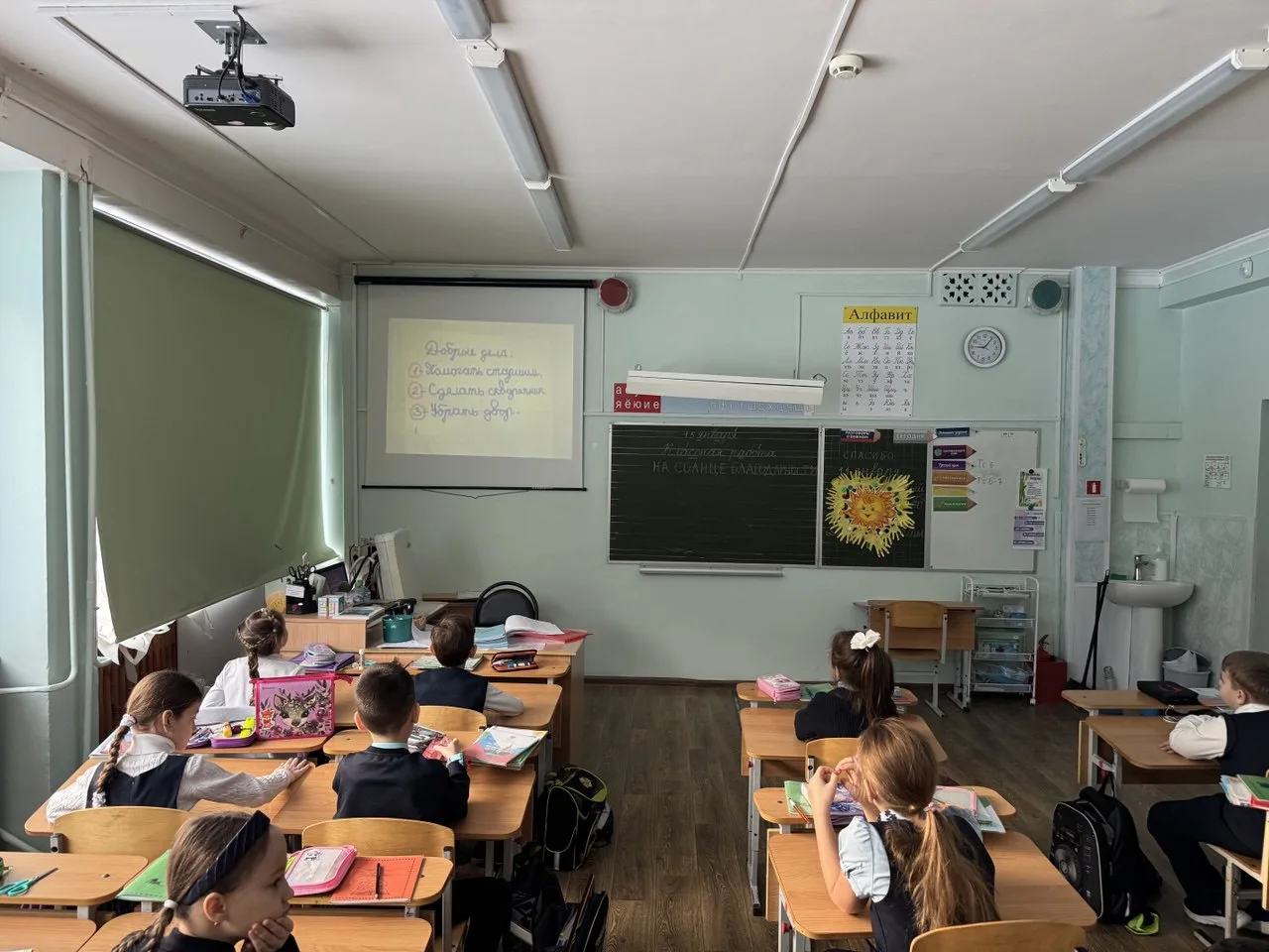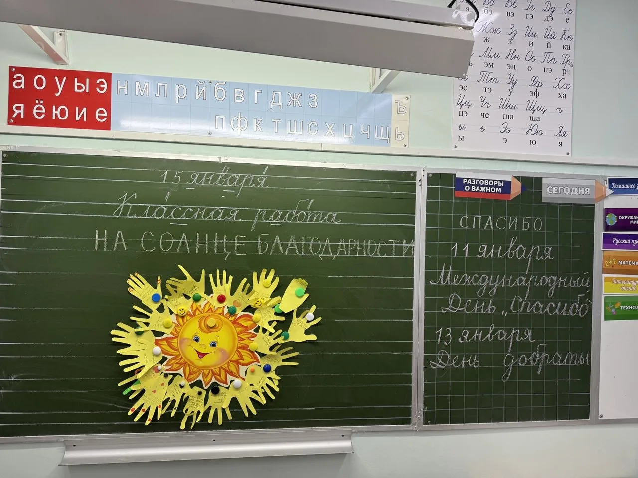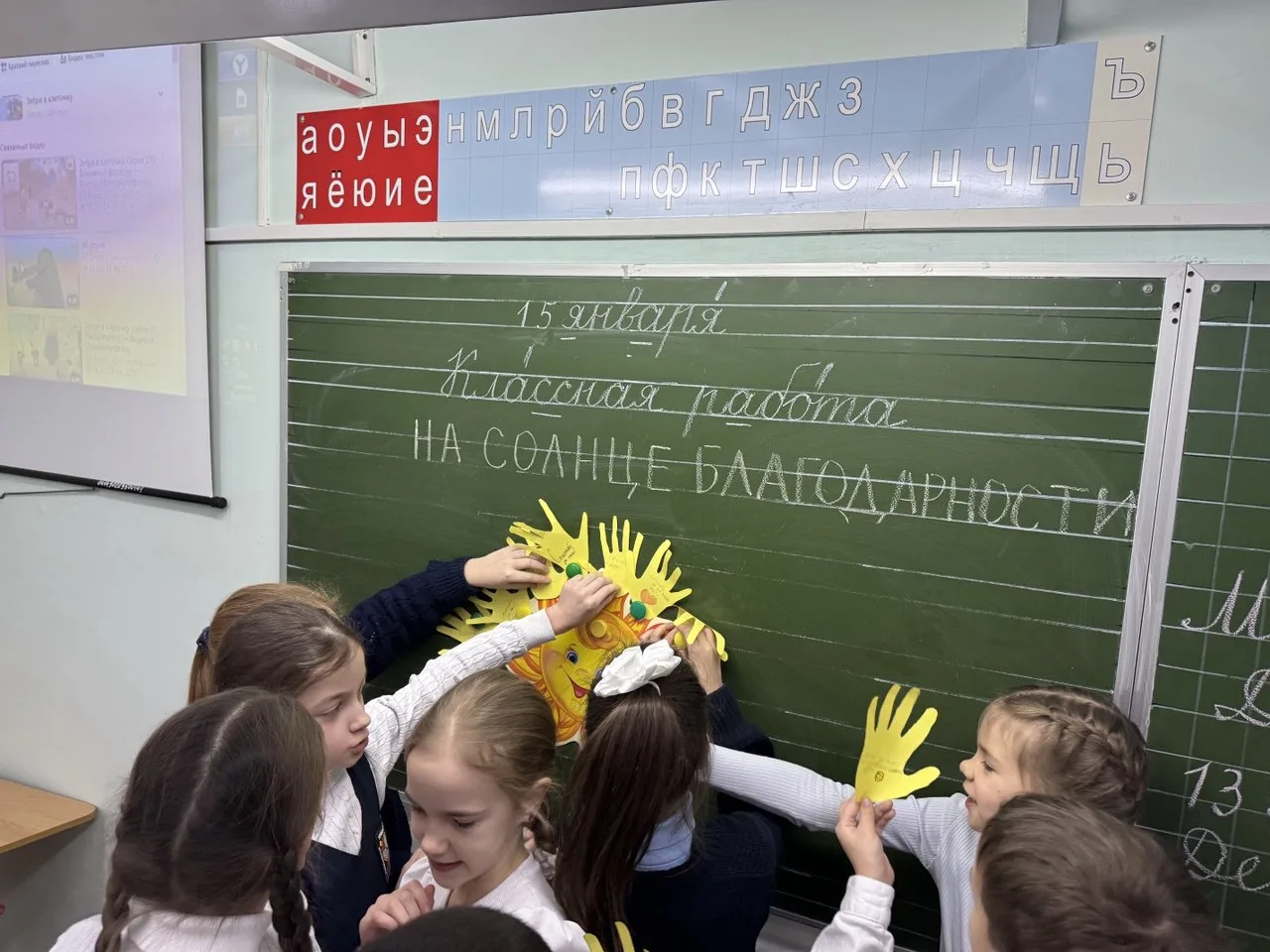 Ребята смотрели мультфильмы и пели песни о доброте. В конце классного часа сделали солнце благодарности для своих друзей и одноклассников.