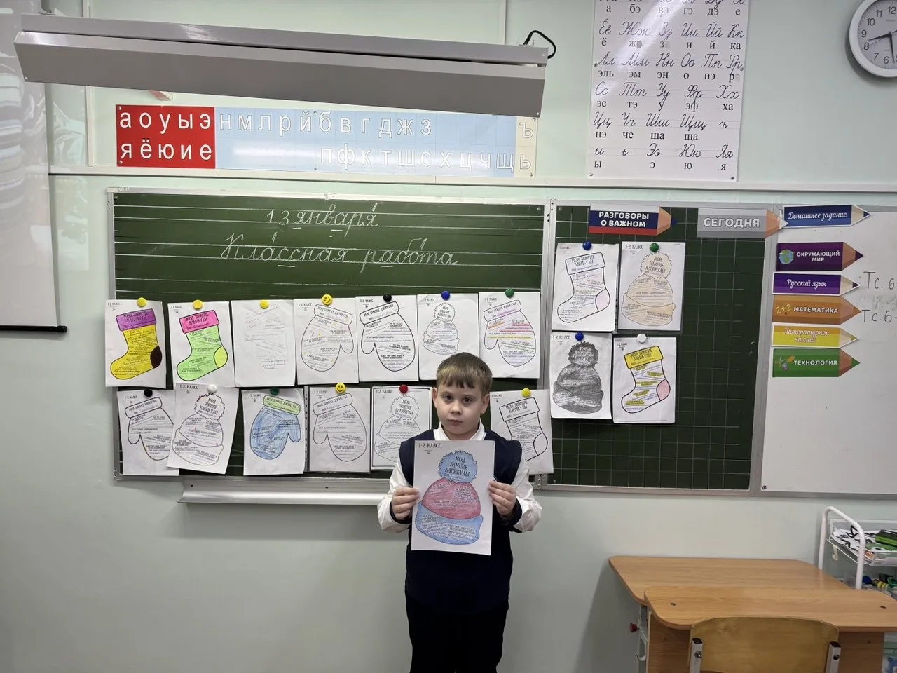 В конце урока учащиеся рассказали, как они провели зимние каникулы. Каждый из них выбрал свой зимний сюжет и с помощью вопросов ❓️составил свой рассказ.