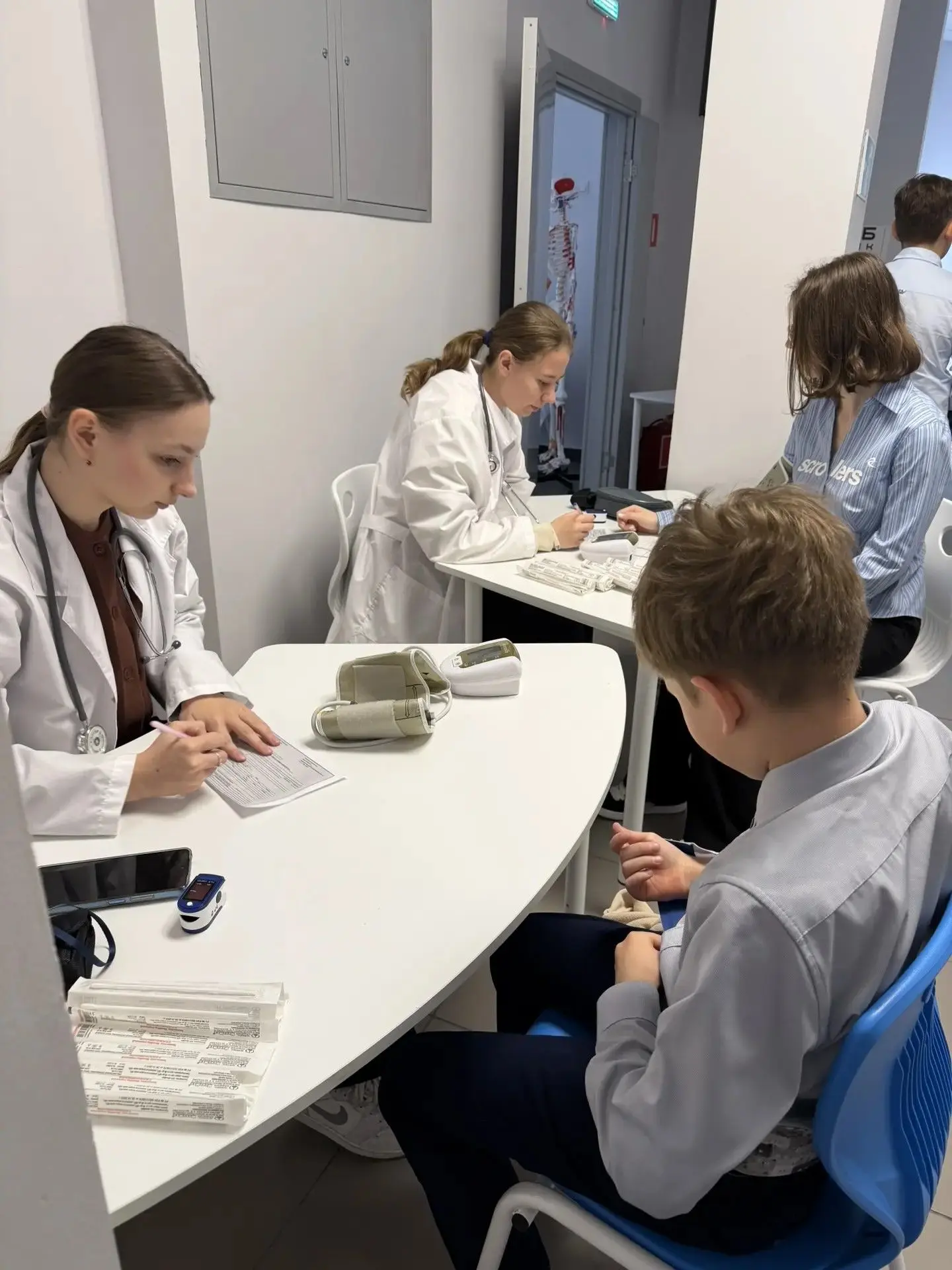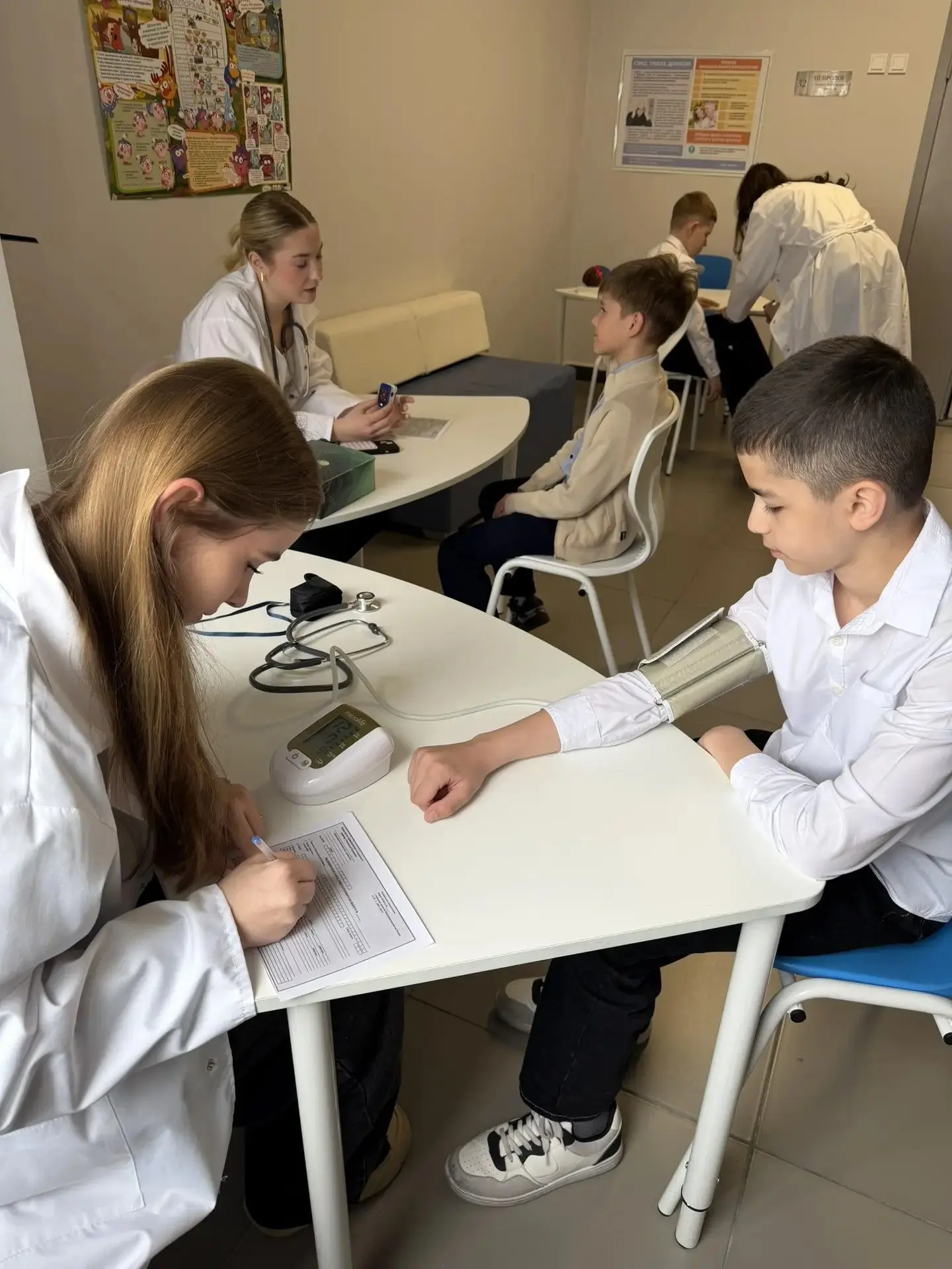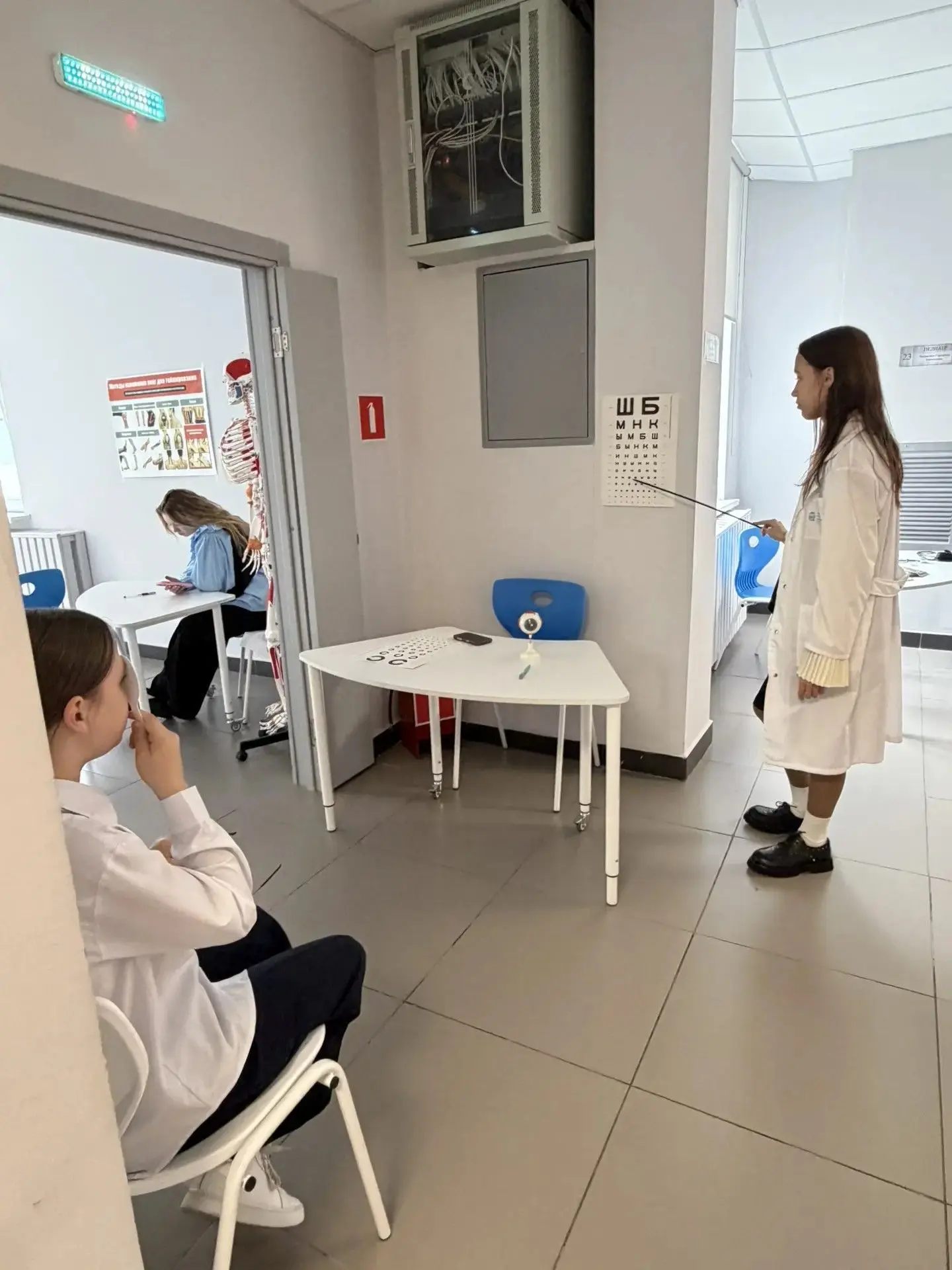 🏥 Под руководством педагогов-наставников школьники организовали несколько кабинетов. В приемном покое регистрировали «пациентов» и направляли их к нужным специалистам. В кабинетах терапевта и педиатра проводили первичный осмотр, измеряли давление и температуру, собирали анамнез. В кабинете окулиста проверяли зрение и давали рекомендации по его сохранению. Работал и кабинет профилактики, где говорили о здоровом образе жизни, правильном питании и гигиене.