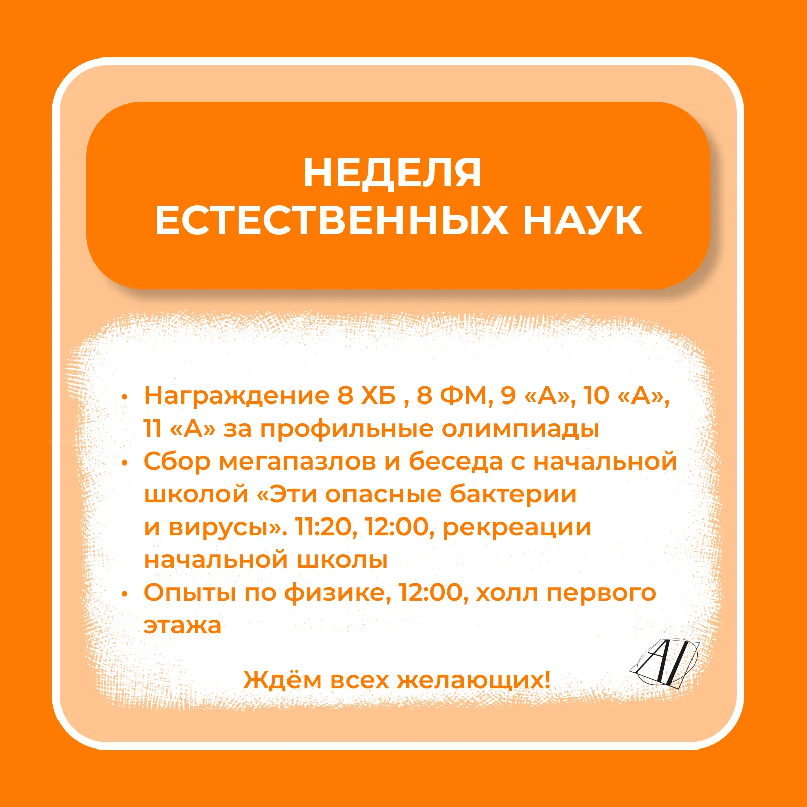 Впереди — много интересного, творческого и познавательного. Для ребят пройдет конкурс образов «Самый забавный ученый», где можно проявить фантазию, чувство юмора и показать, что наука может быть по-настоящему веселой. Самые необычные и яркие образы обязательно привлекут внимание, а лучший костюм получит сладкий приз! 🍬