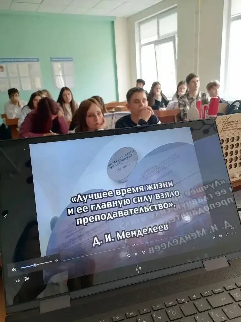 🔬 Для учеников 8-х классов на уроках химии организовали просмотр документального фильма «Заветные мысли Дмитрия Менделеева». Ребята больше узнали о жизни и научном пути великого русского ученого, о широте его интересов и о том, насколько актуальными остаются многие его идеи и сегодня.