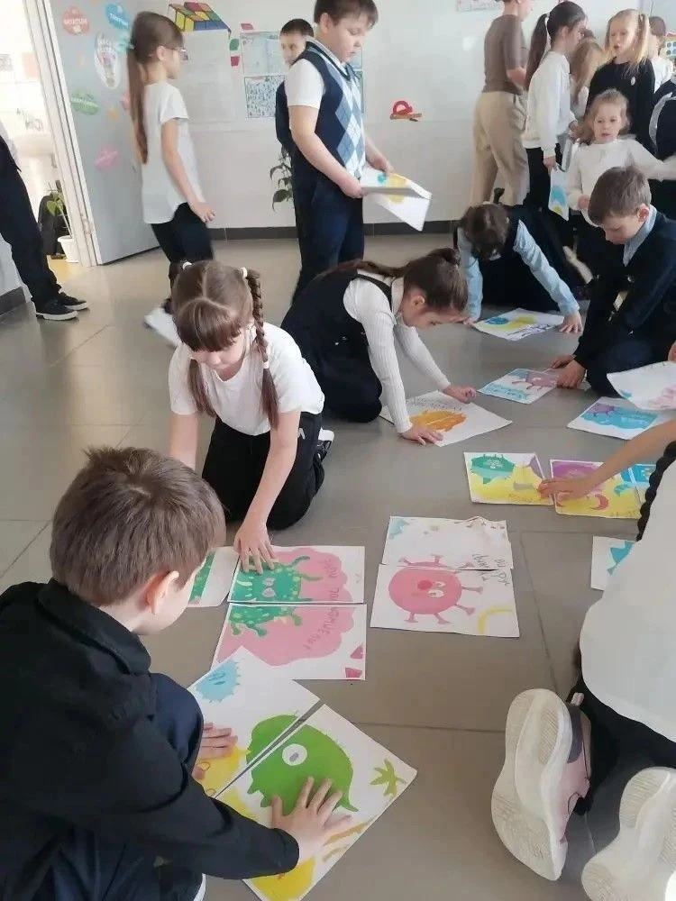 🦠 Для учеников начальной школы прошла беседа «Бактерии и вирусы: невидимый мир вокруг нас». Ребята узнали много нового о том, как устроен этот невидимый мир, задавали вопросы, а затем для закрепления темы собрали большой тематический пазл.
