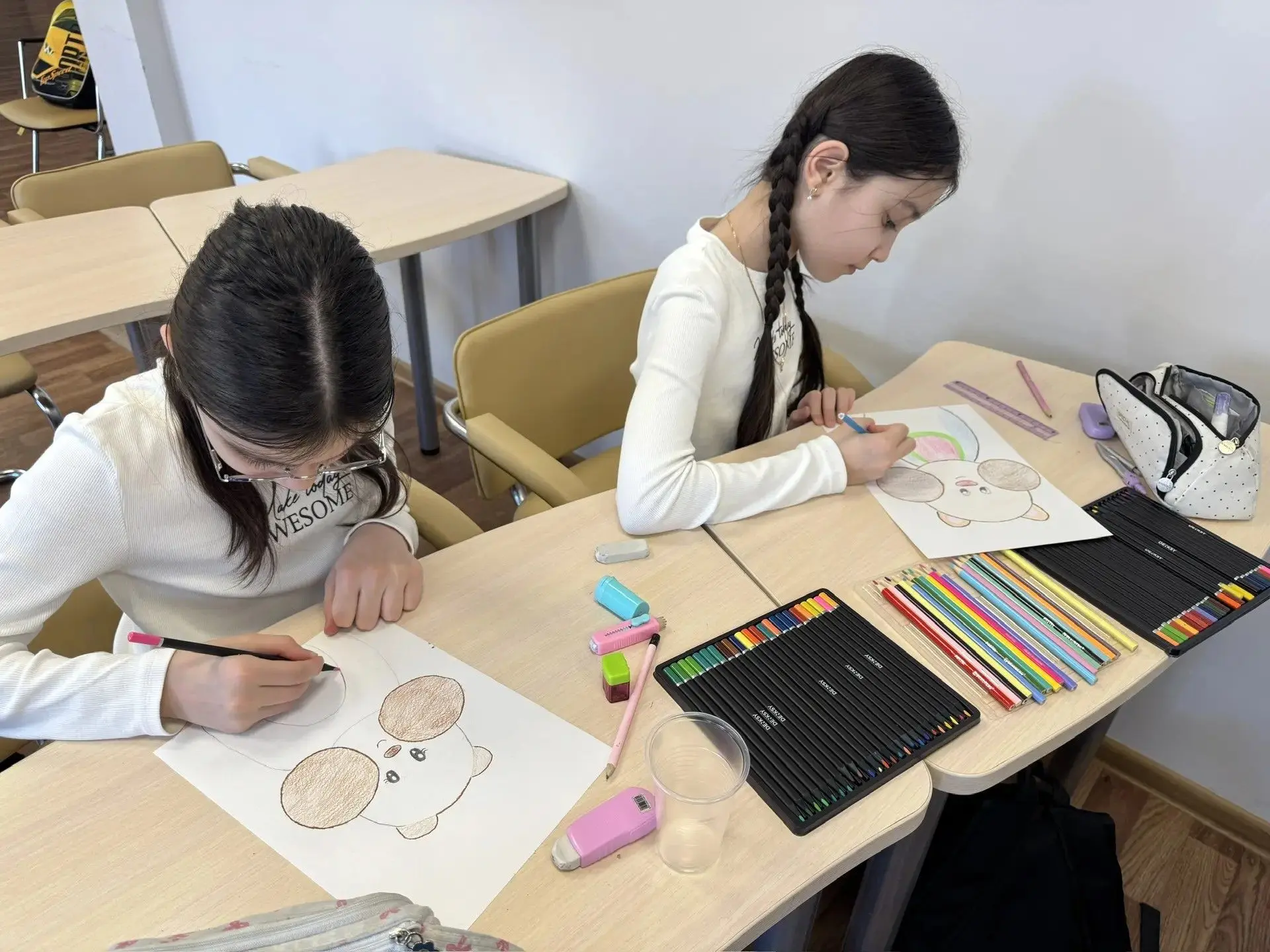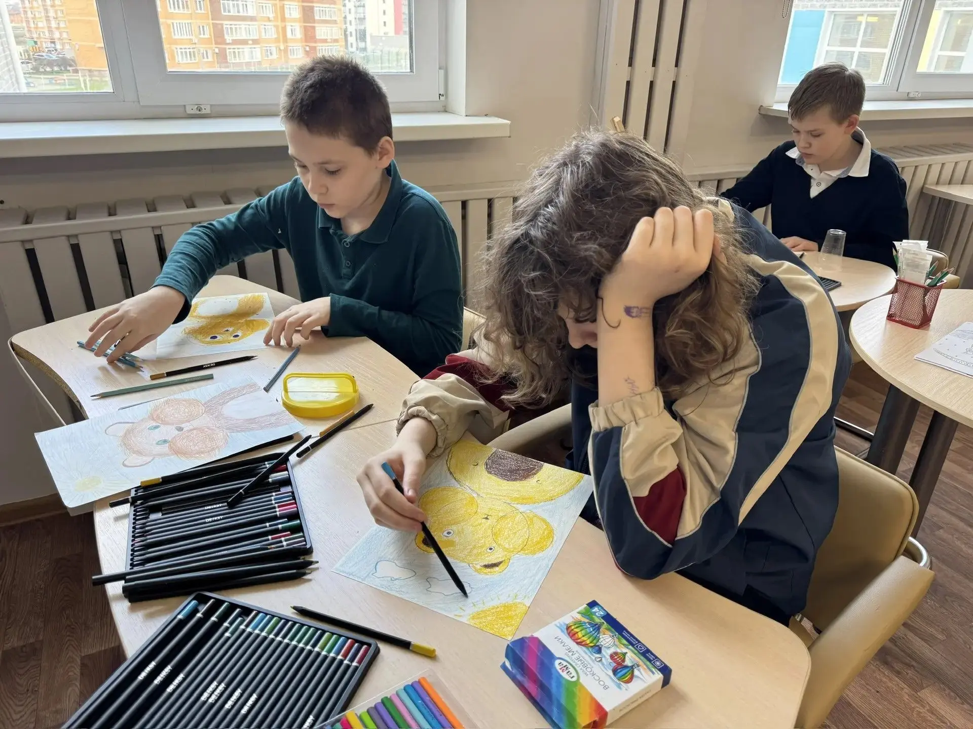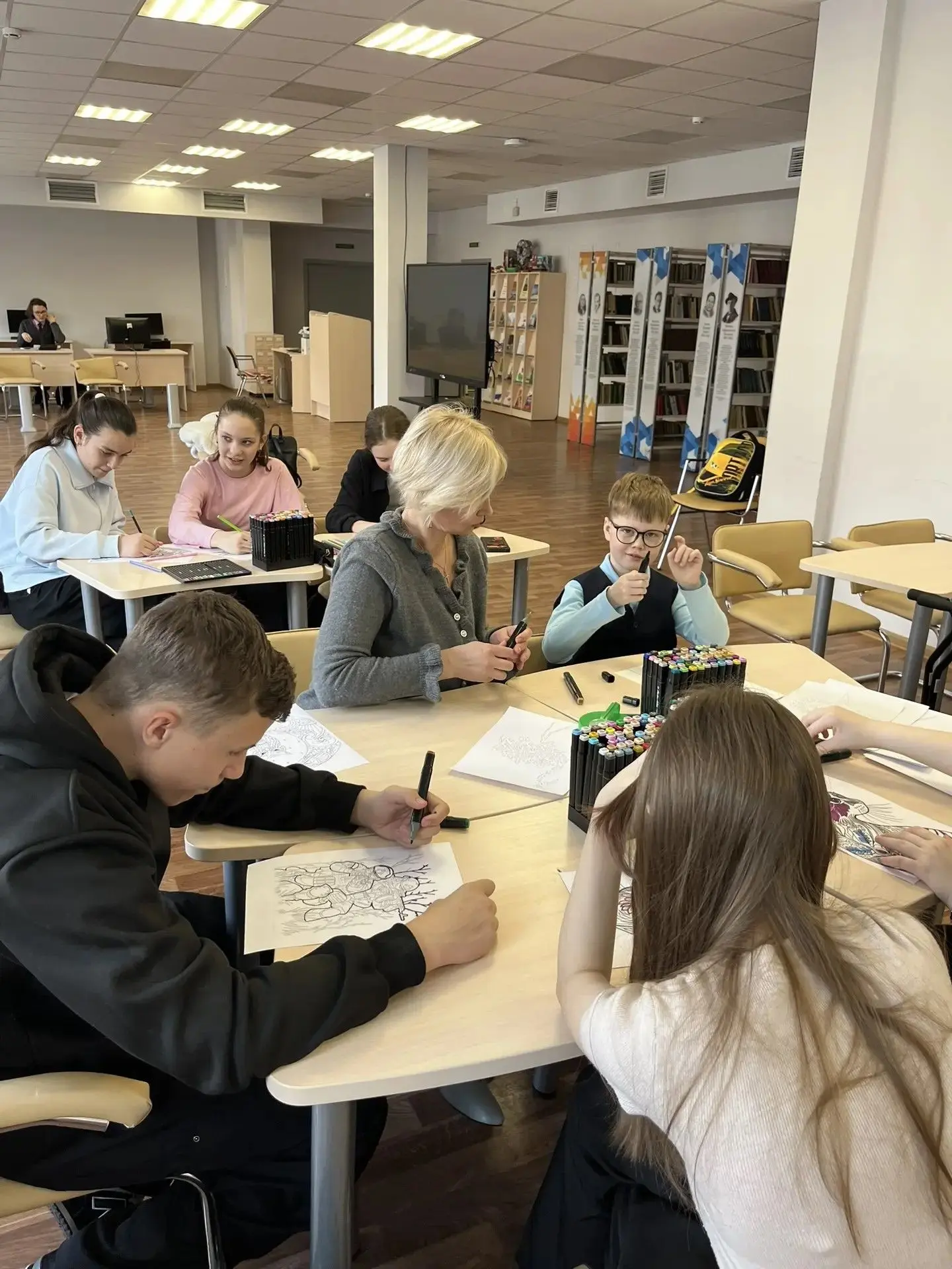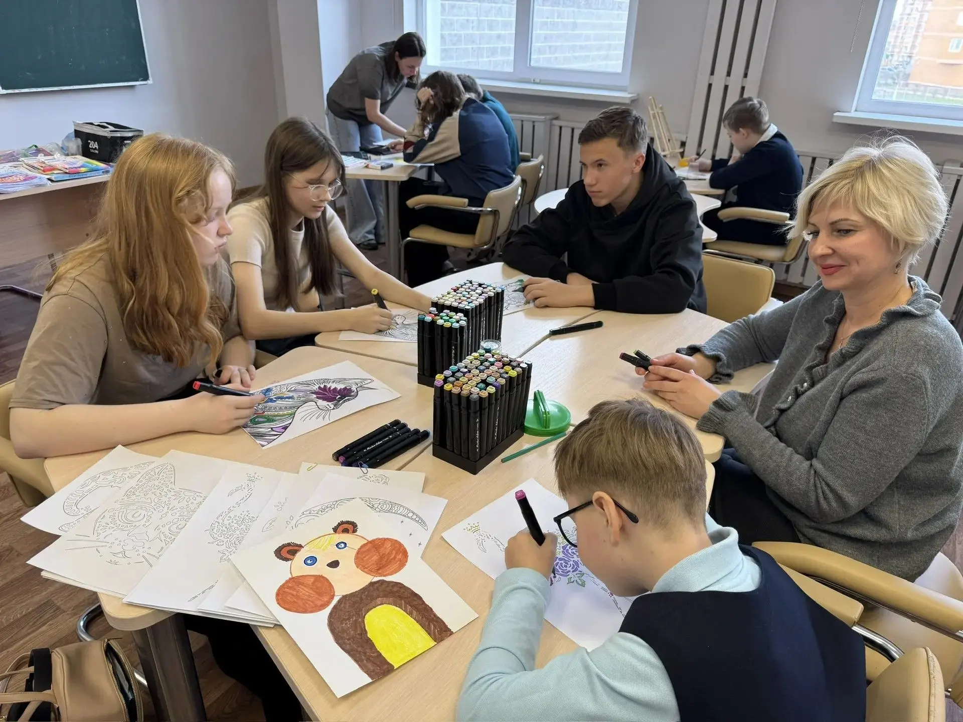 Ребята попробовали себя в самых разных направлениях. В творческой мастерской они рисовали яркими маркерами и карандашами, а для ребят постарше было организовано занятие в стиле зентангл — ребята рисовали узоры и линии.