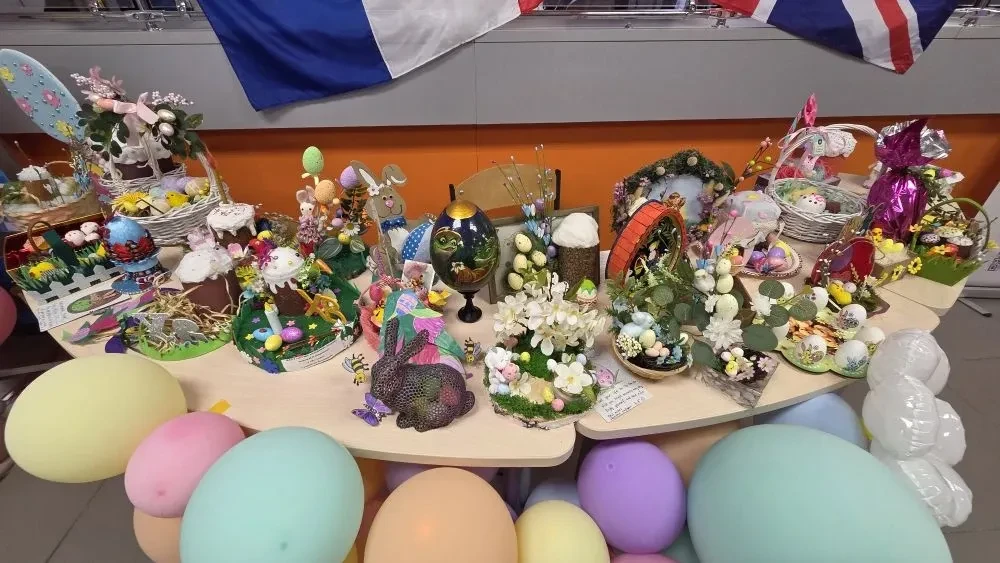 🐰 Одним из событий дня стала выставка, посвящённая английским пасхальным традициям. Ребята представили творческие работы, в которых отразили символы и обычаи Пасхи в Великобритании. На выставке можно увидеть пасхальных кроликов, разноцветные яйца, весенние цветы и праздничные угощения.