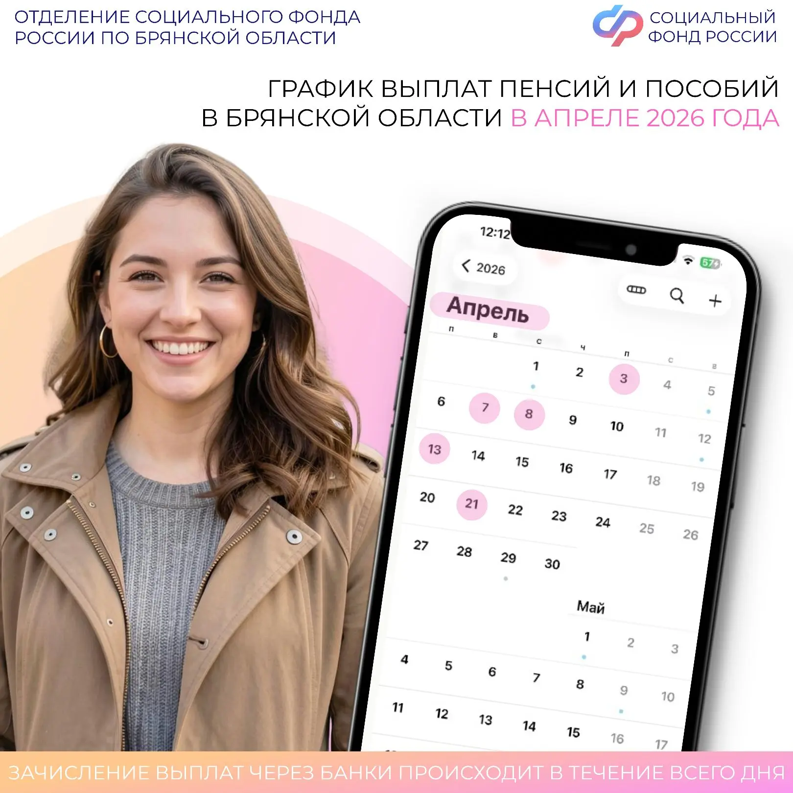 📝 Заявление на выплату принимается с 1 июня до 1 октября года, следующего за тем, за который исчислен НДФЛ. Подать можно в МФЦ, на Госуслугах или в Отделении СФР по Брянской области.