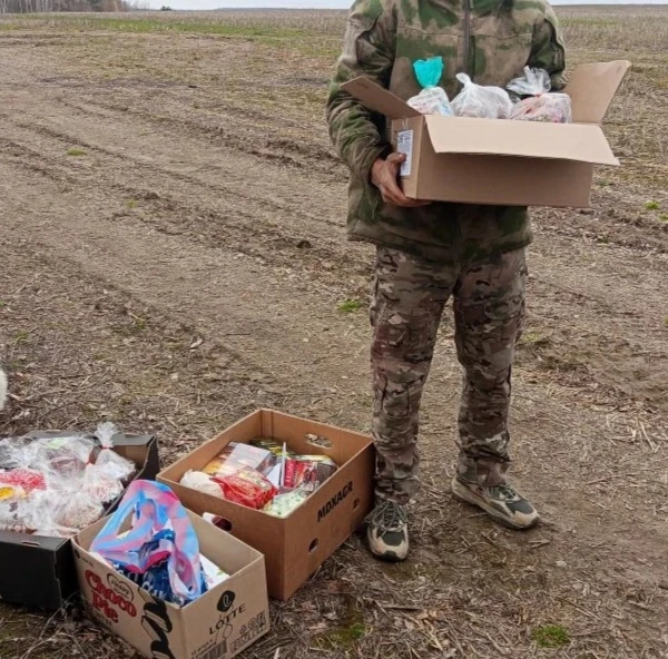 В руках наших защитников собранные вместе Пасхальные угощения!!!🙏🙏🙏