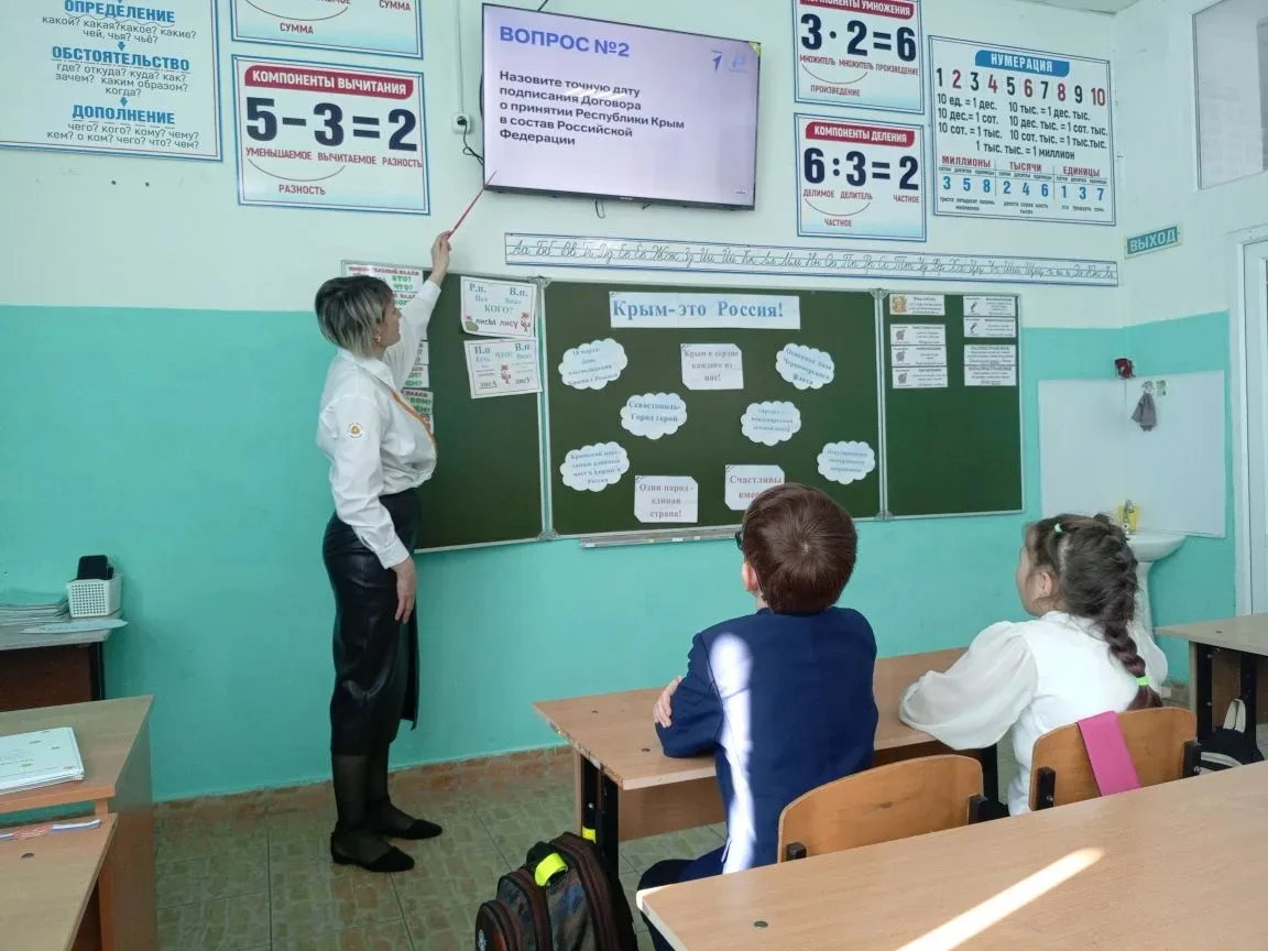 В предверии этого замечательного праздника советник директора по воспитанию Ермакова Л. С. сыграла с ребятами в увлекательную викторину на знание истории Крыма