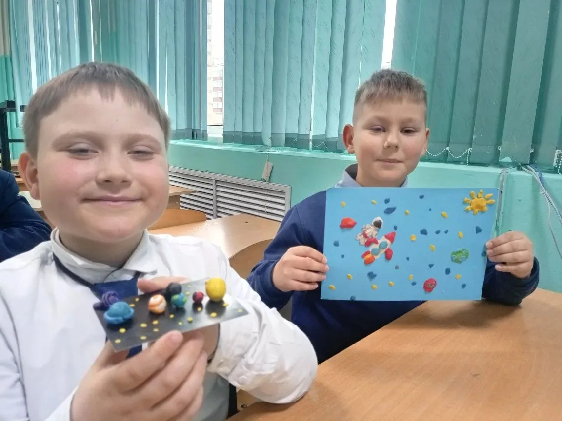 В течение недели ребята узнали много интересного о первом полете человека в Космос, познакомились с планетами Солнечной системы, участвовали в мастер-классах, флешмобе, смотрели в настоящий телескоп, а также проявляли фантазию на уроках изобразительного искусства и технологии.