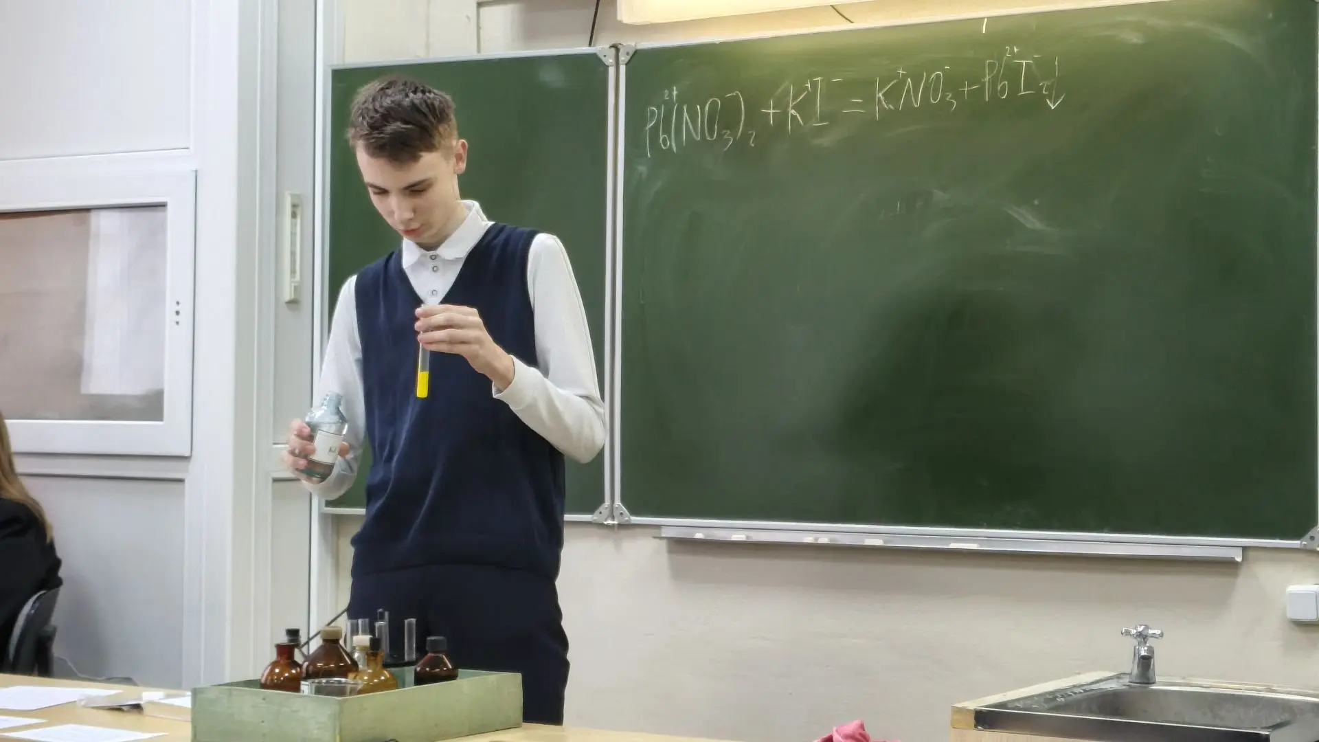 В рамках декады 10 апреля учащиеся 8 Б класса провели Практическую работу по химии. Соединяли разные вещества и получали блестящие результаты, доказывая, что химия - это НАУКА, хотя все было похоже на волшебство.