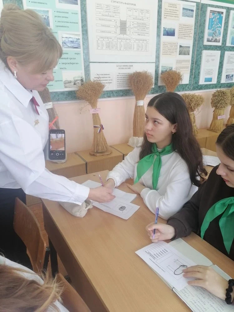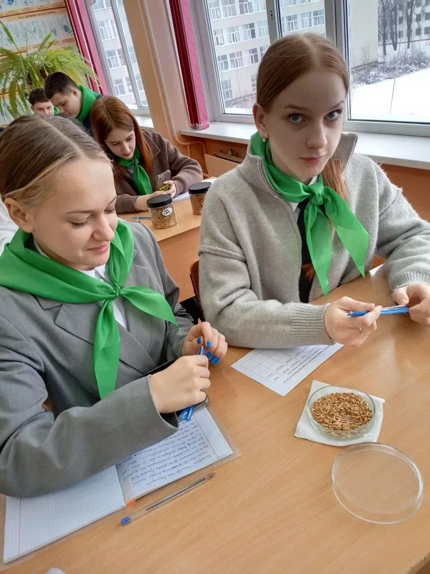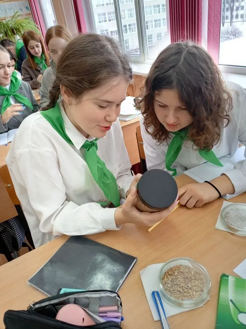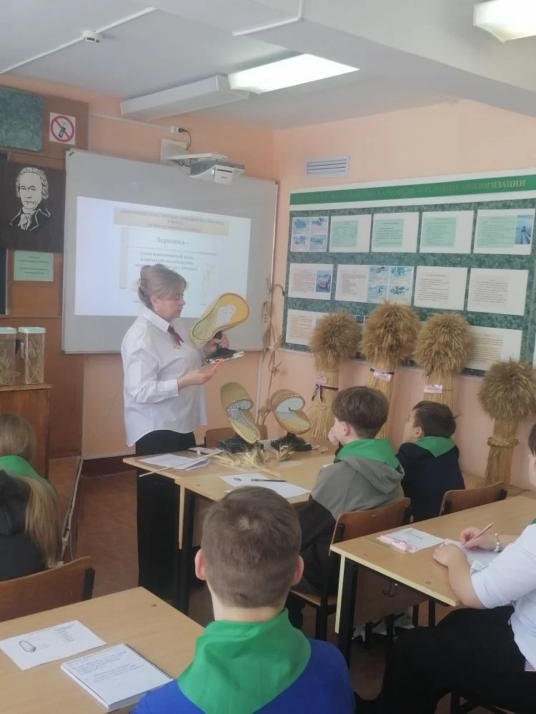 Во время занятия школьники углубили знания о различиях между зерновками разных злаковых культур. Они изучили отличия зерновки пшеницы от зерновки кукурузы, разобрали особенности болезней зерновых растений, передаваемых семенами.