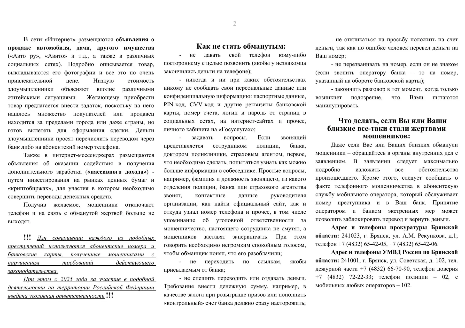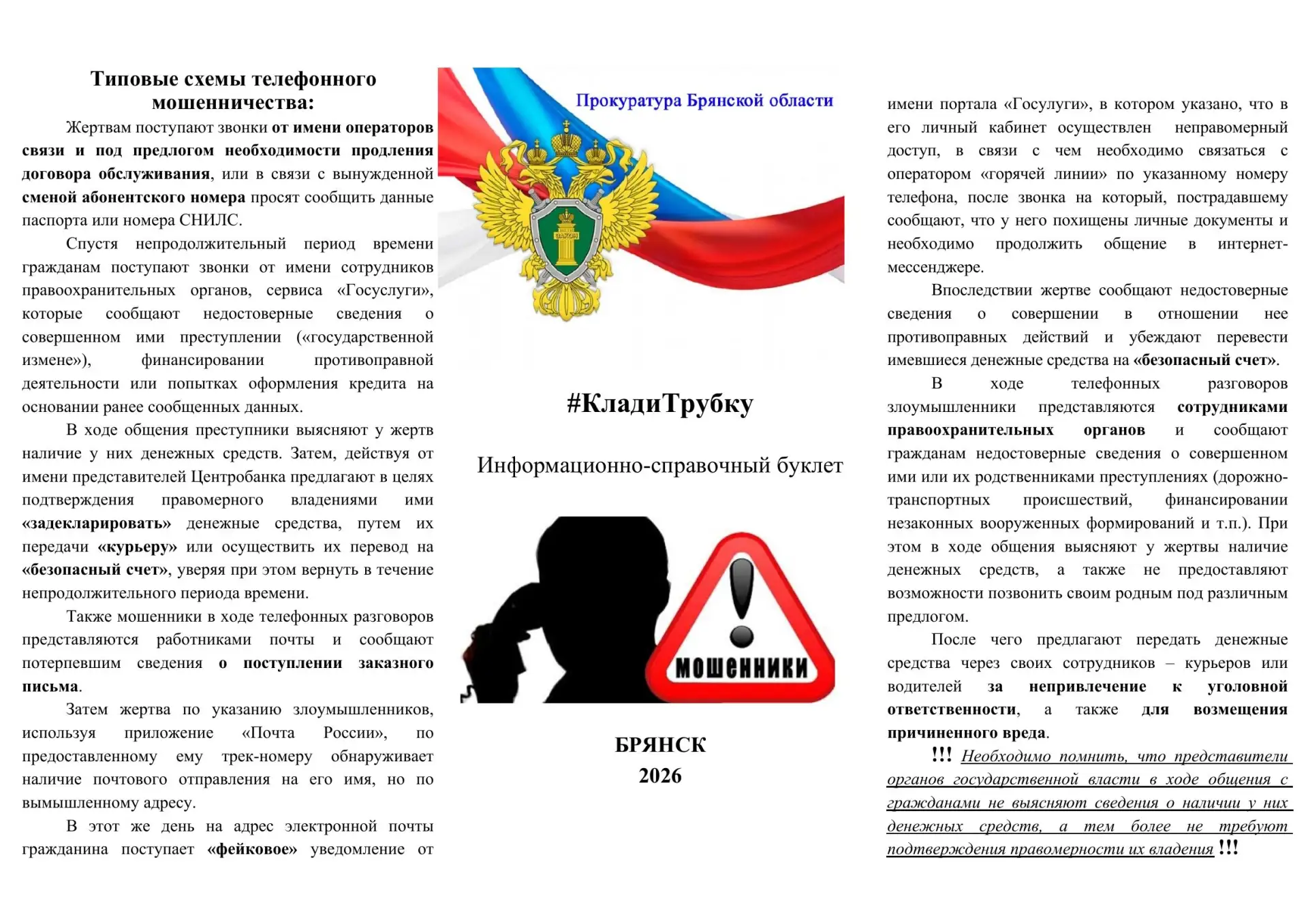 Прокуратурой Брянской области разработан информационно-справочный буклет «Клади трубку»