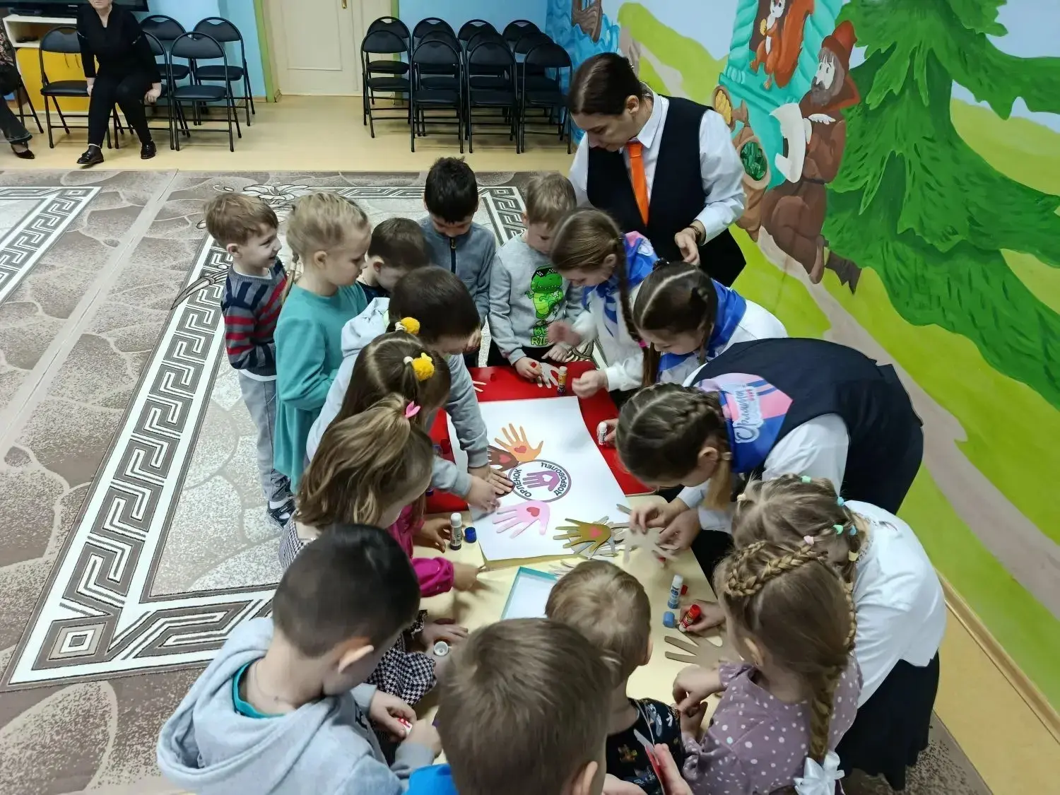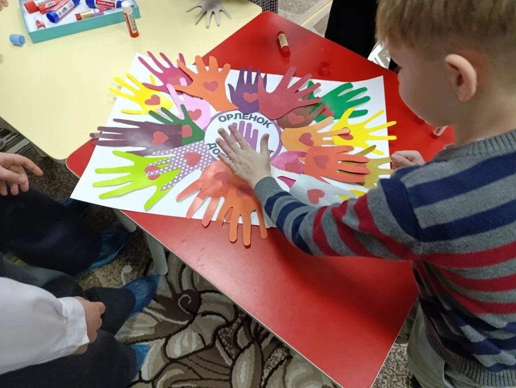 ❤️Целью визита было не просто рассказать о добровольчестве, а наглядно показать его суть — делать добрые дела от сердца. Орлята в доступной форме объяснили малышам, кто такие волонтёры и как они помогают людям, животным и своему родному краю. Вместе поиграли в весёлую игру и сделали яркий плакат ставший олицетворением дружбы и единства Орлят и дошколят.
