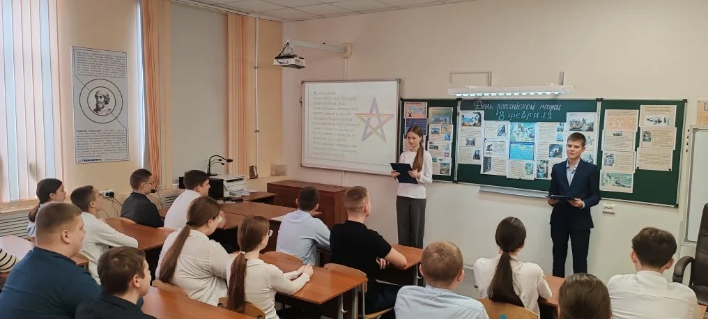 В преддверии Дня российской науки учителем английского языка Кожемяко Людмилой Анатольевной с учащимися старших классов было проведено внеклассное мероприятие на английском языке «Великие ученые России». 🌟