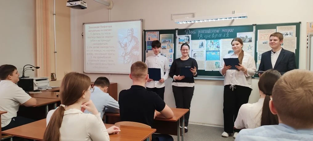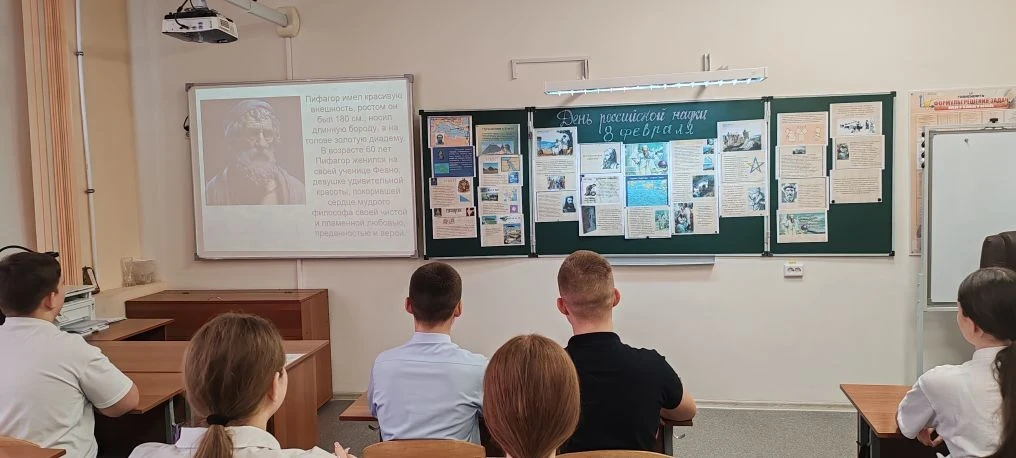В преддверии Дня науки 6 февраля в МБОУ Выгоничской СОШ состоялся увлекательный устный журнал, посвящённый одному из самых выдающихся учёных античности — Пифагору. Учащиеся 8х классов с интересом погрузились в атмосферу далёкой эпохи и познакомились с жизнью и научным наследием великого математика.