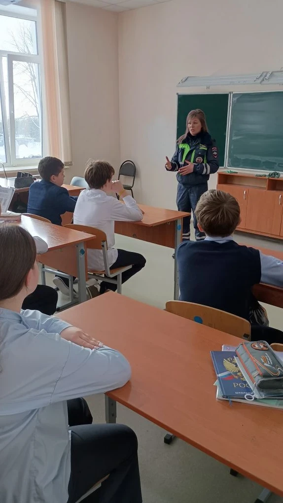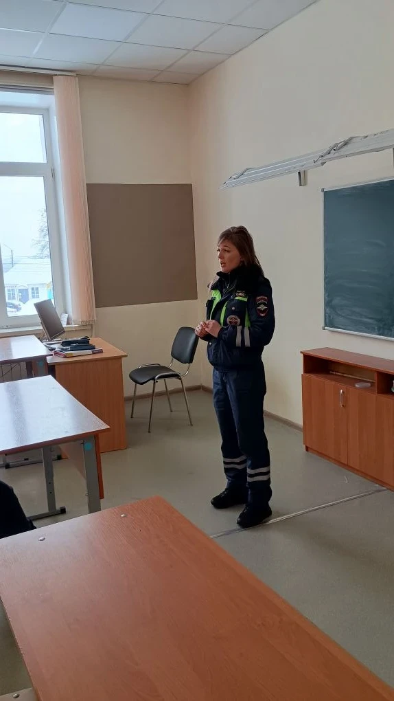 В преддверии Дня защитника Отечества учащиеся нашей школы встретились с инспектором ДПС ГИБДД — старшим лейтенантом Снытко Н. А.