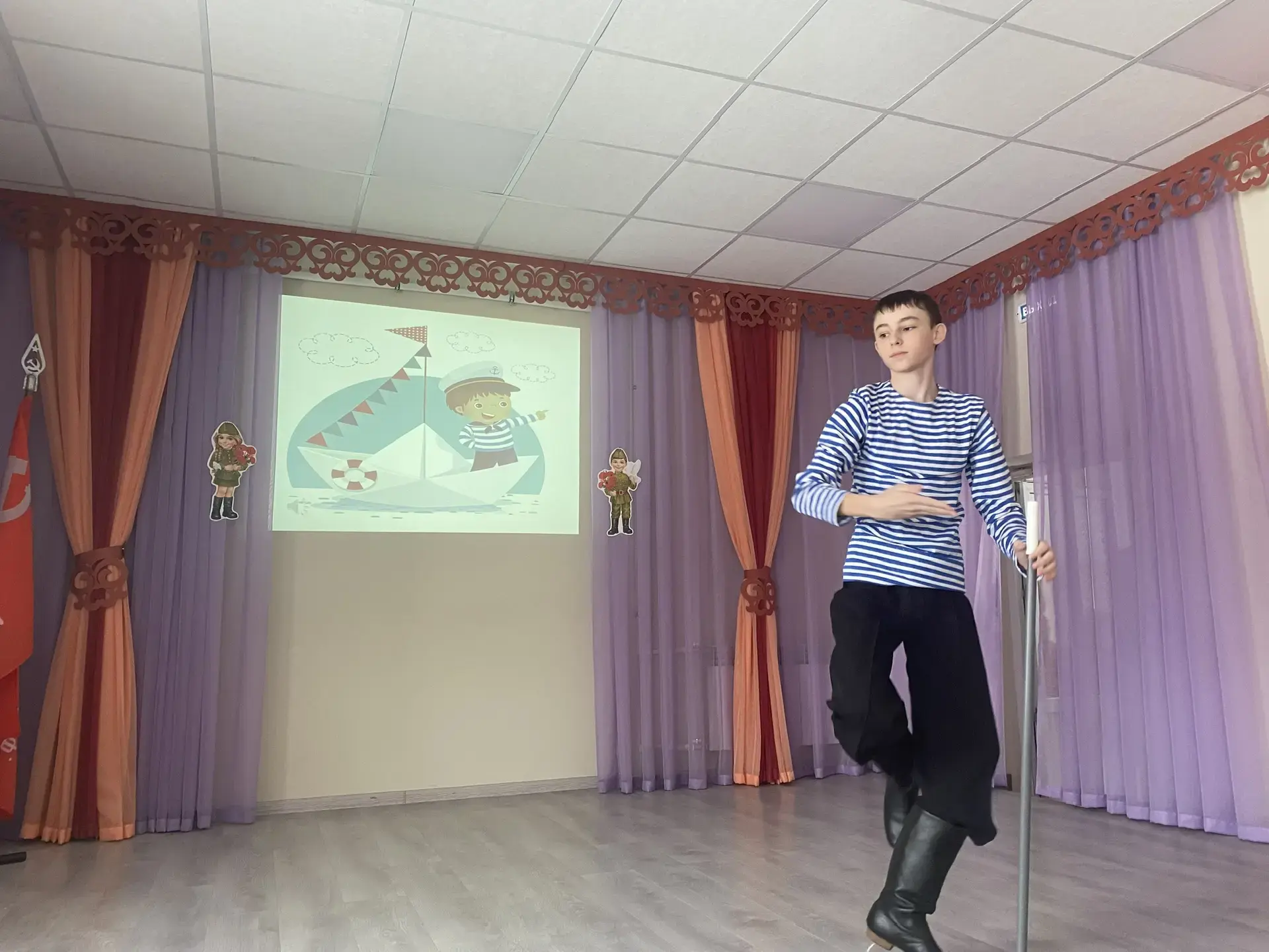 Особого внимания заслужил яркий музыкальный подарок от Глебкина Александра, ученика 7 «Б» класса — его выступление стало настоящим украшением концерта и вызвало бурные овации!