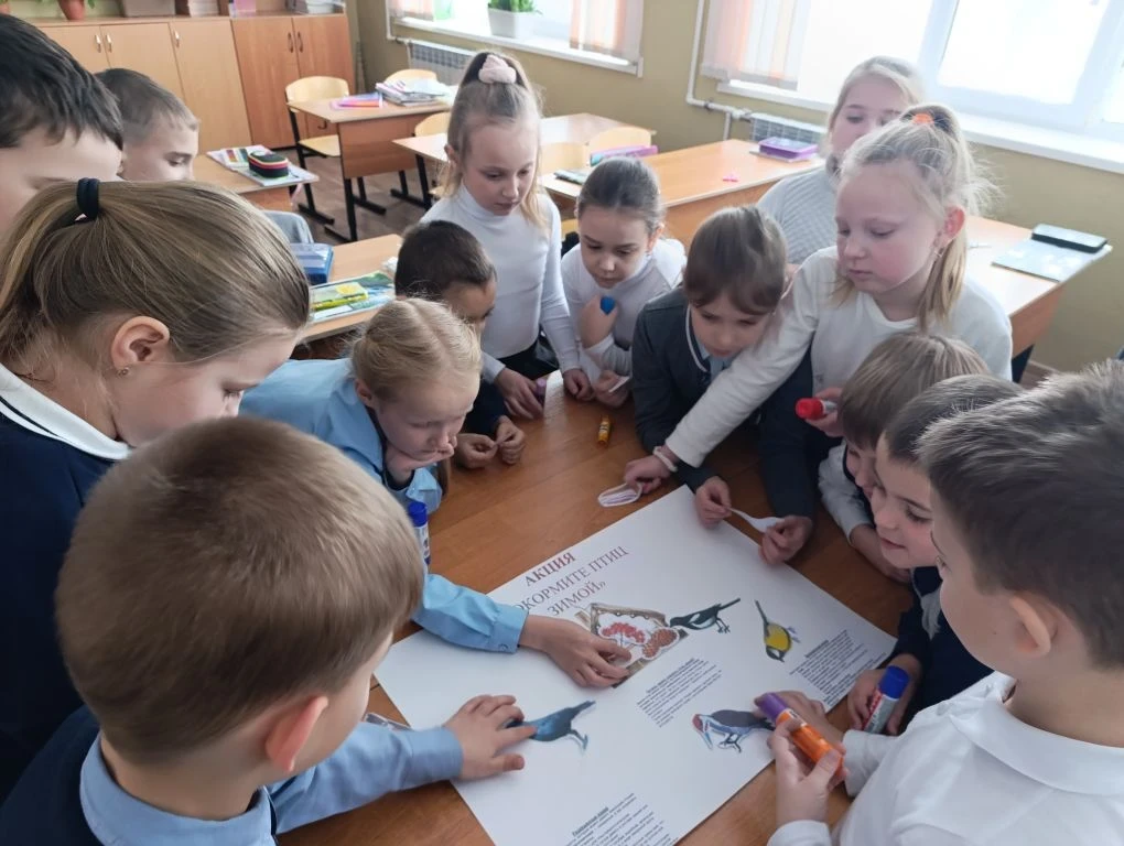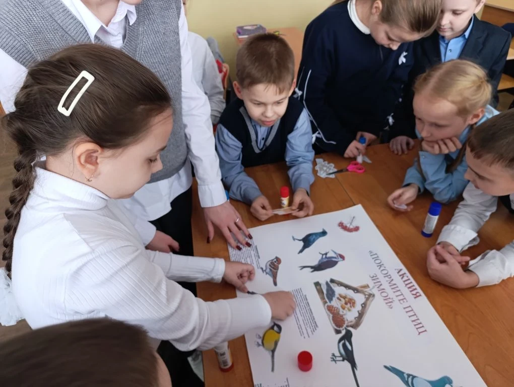 И тогда родилась идея — создать не просто рисунок, а настоящий призыв к доброте. Учащиеся сделали яркий плакат, на котором изображены синицы, воробьи, снегири и уютная кормушка, наполненная угощением.