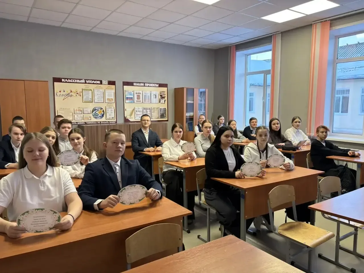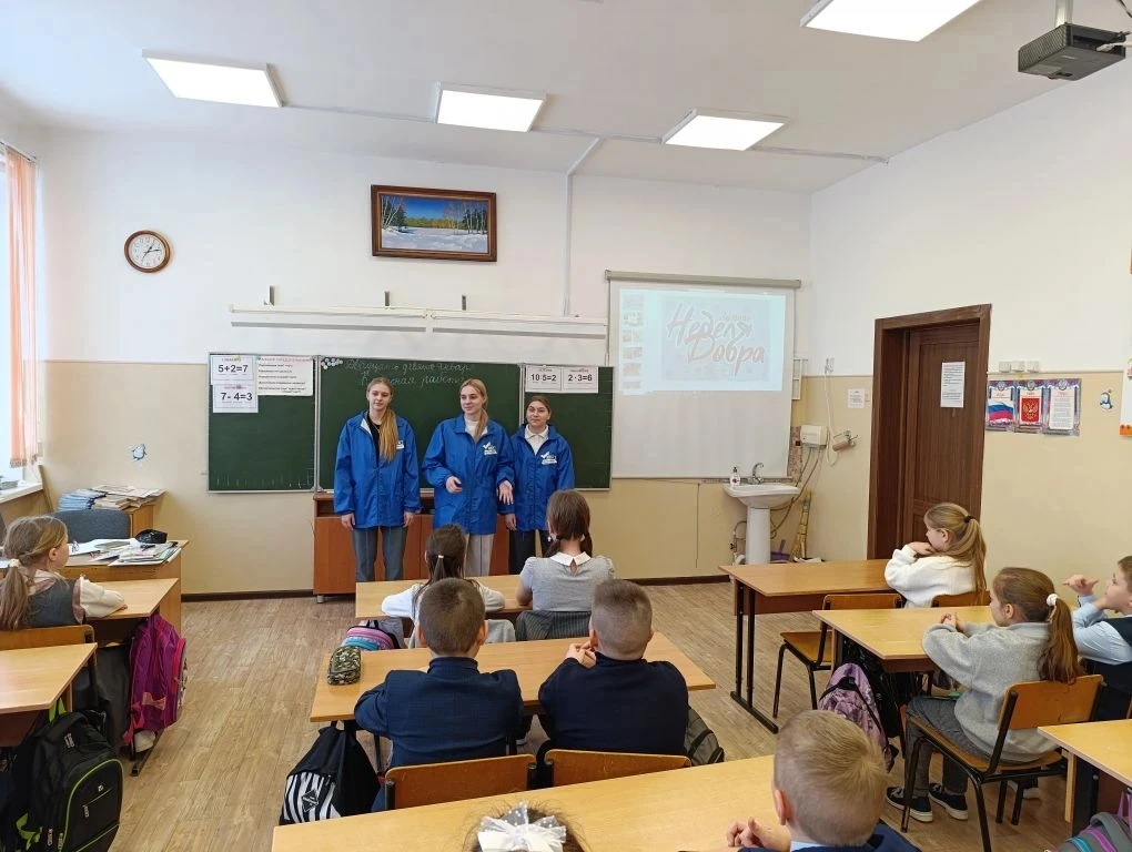 📌Встреча началась с классного часа, который больше напоминал душевный разговор. Мы услышали трогательные истории о помощи одиноким людям, спасении животных и участии в благотворительности. Однако наши новые друзья не только делились опытом, но и вовлекли нас в процесс: показали свои реализованные проекты и провели увлекательную викторину.