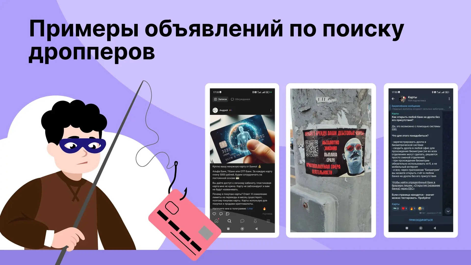 Дропперы - это лица, которые участвуют в кражах денег со счетов, сокрытии преступлений, обналичивании и легализации криминальных доходов.
