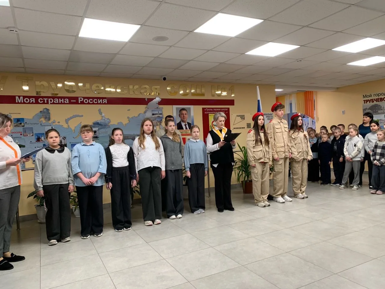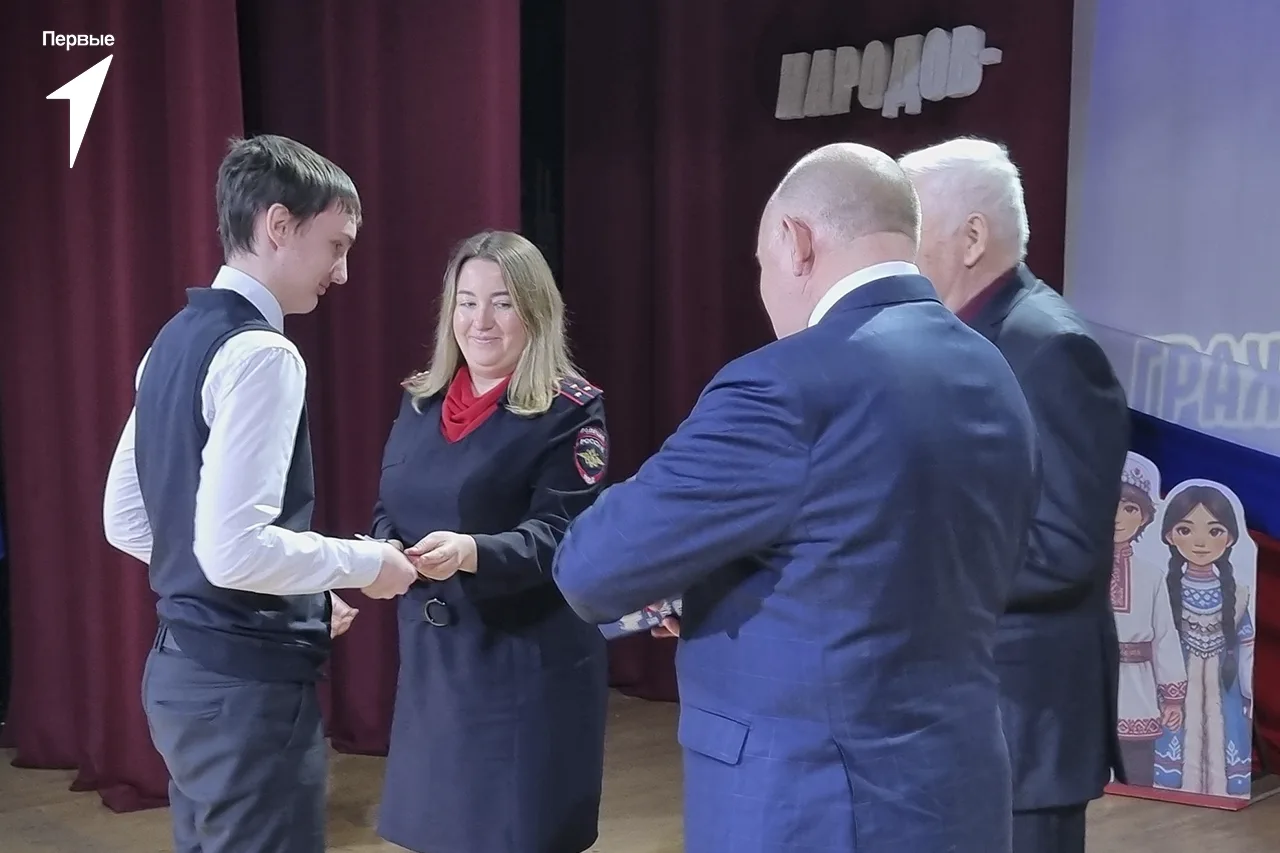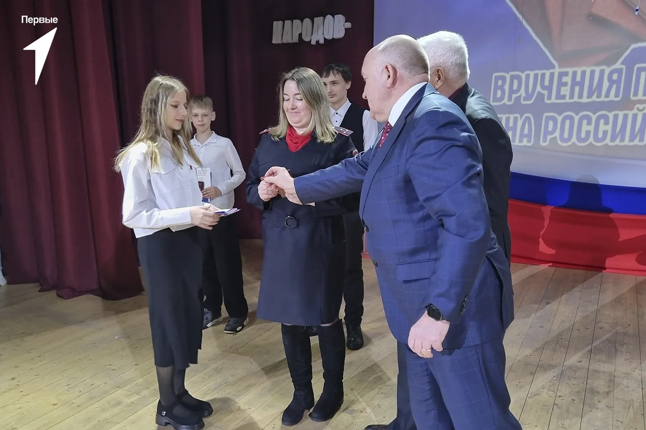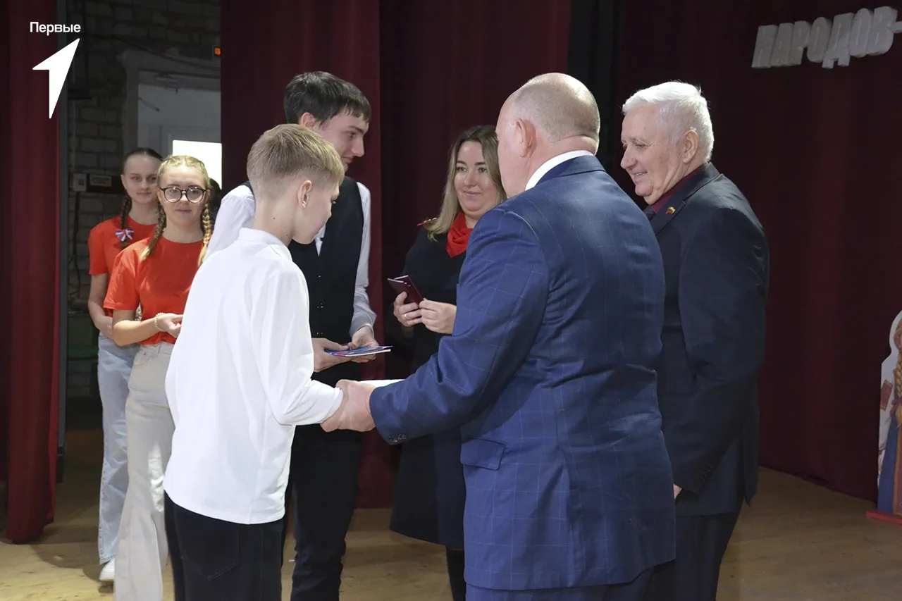Паспорта, Конституцию РФ, а также фирменные обложки и значки Движения Первых, в торжественной обстановке ребятам вручили: глава Трубчевского района Василий Васильевич Евсеев, глава города Трубчевска Николай Иванович Данченко и инспектор отделения по вопросам миграции МО МВД России «Трубчевский», старший лейтенант полиции Анна Григорьевна Боронина.