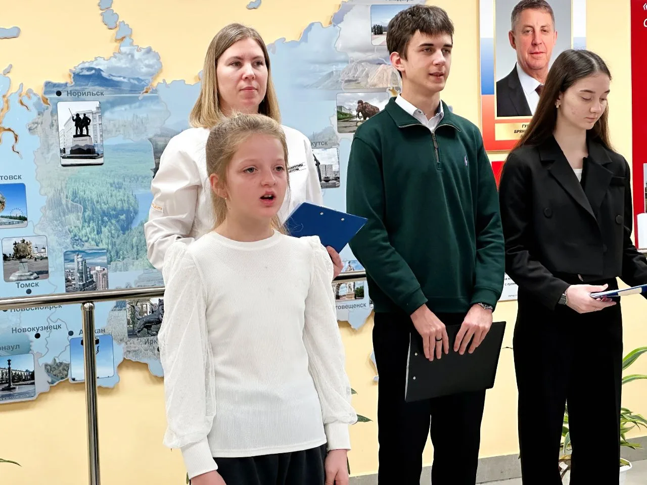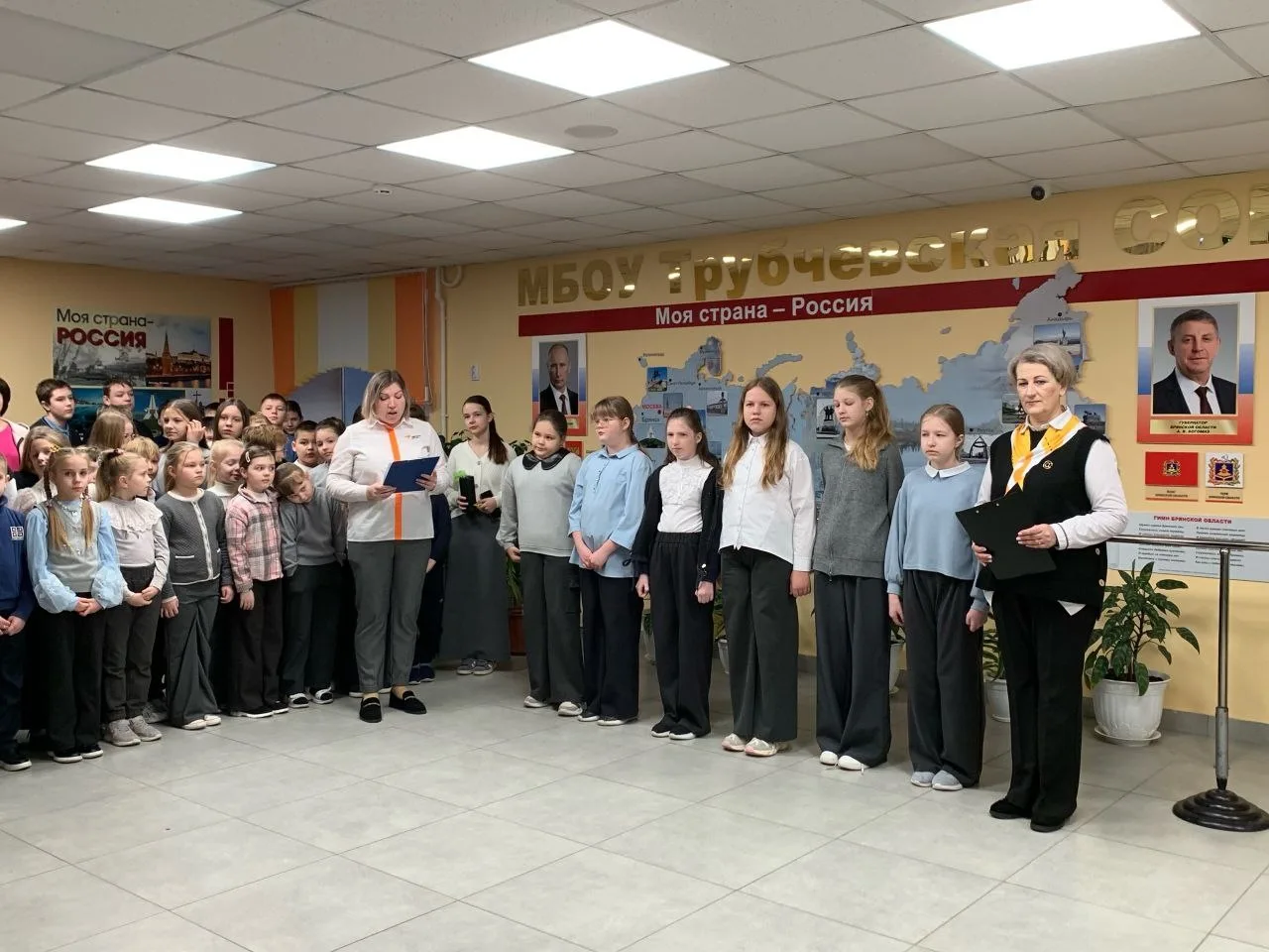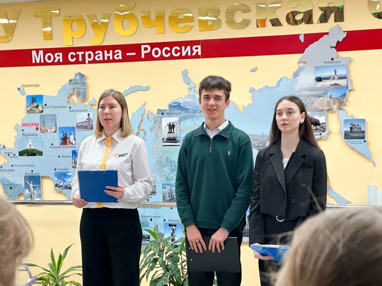 Паспорта, Конституцию РФ, а также фирменные обложки и значки Движения Первых, в торжественной обстановке ребятам вручили: глава Трубчевского района Василий Васильевич Евсеев, глава города Трубчевска Николай Иванович Данченко и инспектор отделения по вопросам миграции МО МВД России «Трубчевский», старший лейтенант полиции Анна Григорьевна Боронина.