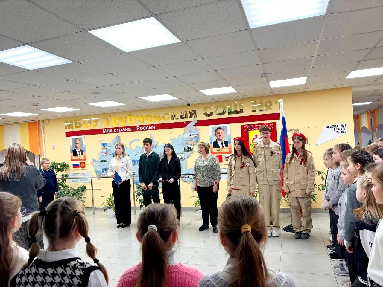 Знаменная группа торжественно вынесла Государственный флаг России. Звучал гимн страны, напоминая о нашей общей истории и великом будущем.