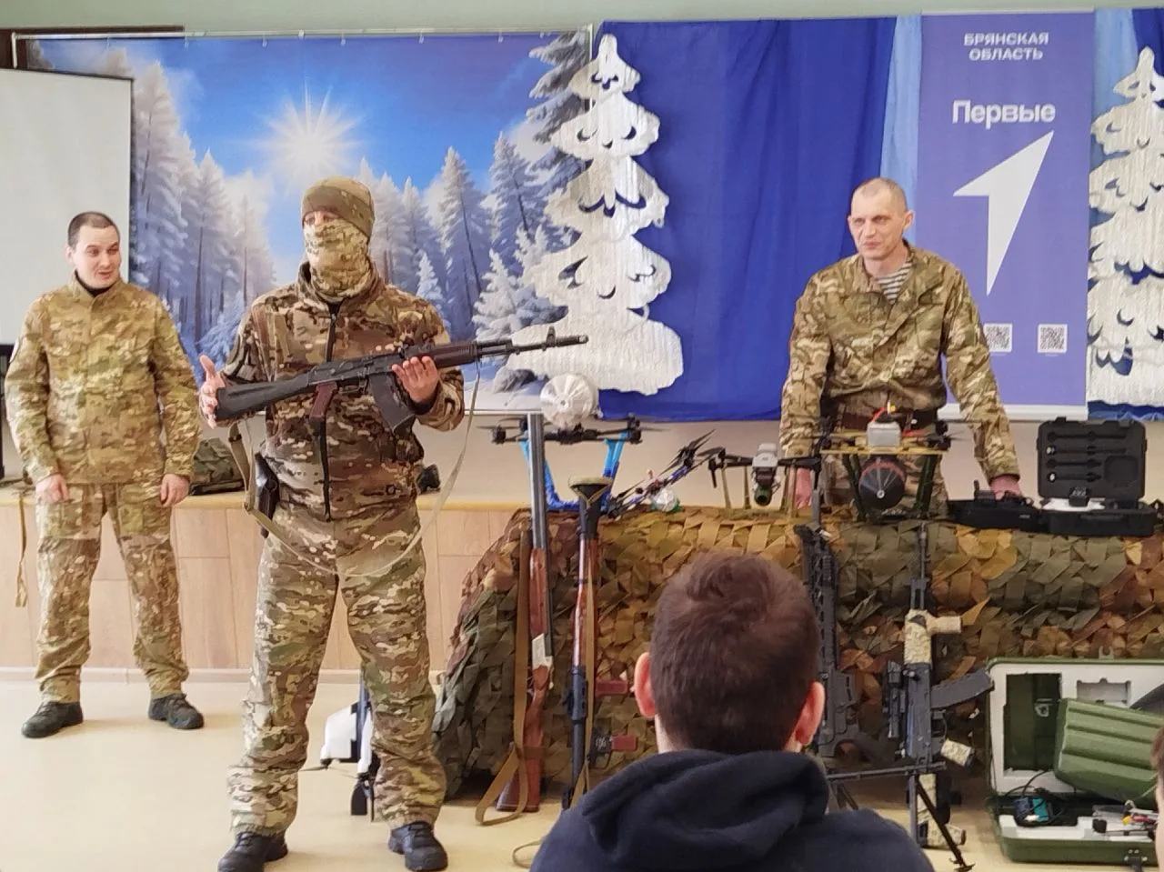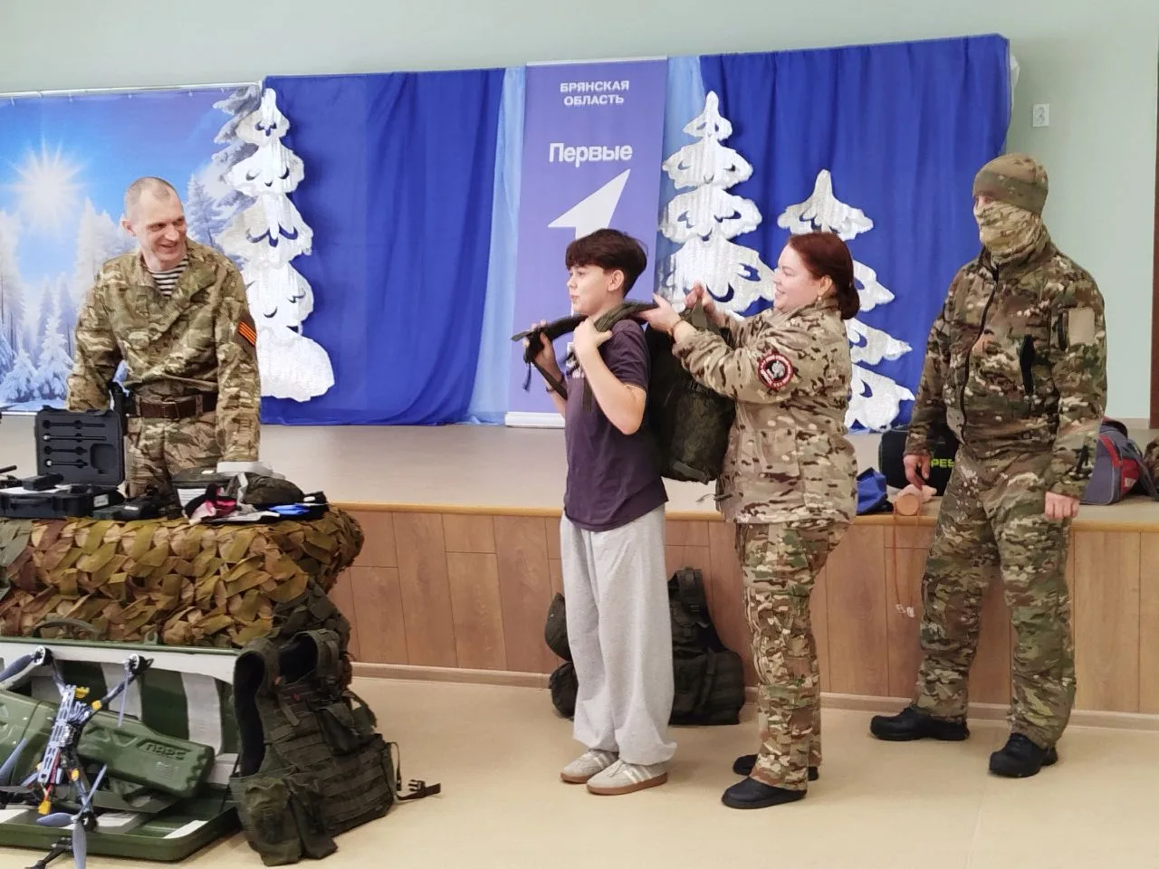 Кроме того, гости привезли с собой образцы оружия и техники, с помощью которых они выполняют свой боевой долг по защите Родины: беспилотники, ружья, знаменитый автомат Калашникова, противодроновое ружье, рации, военную экипировку – бронежилеты, каски и многое другое. Юные трубчане с удовольствием рассматривали эти «боевые экспонаты» необычной выставки, тем более что военнослужащие охотно разрешали им подержать, примерить, повертеть в руках, подробно и полно отвечали на все вопросы мальчишек и девочек.