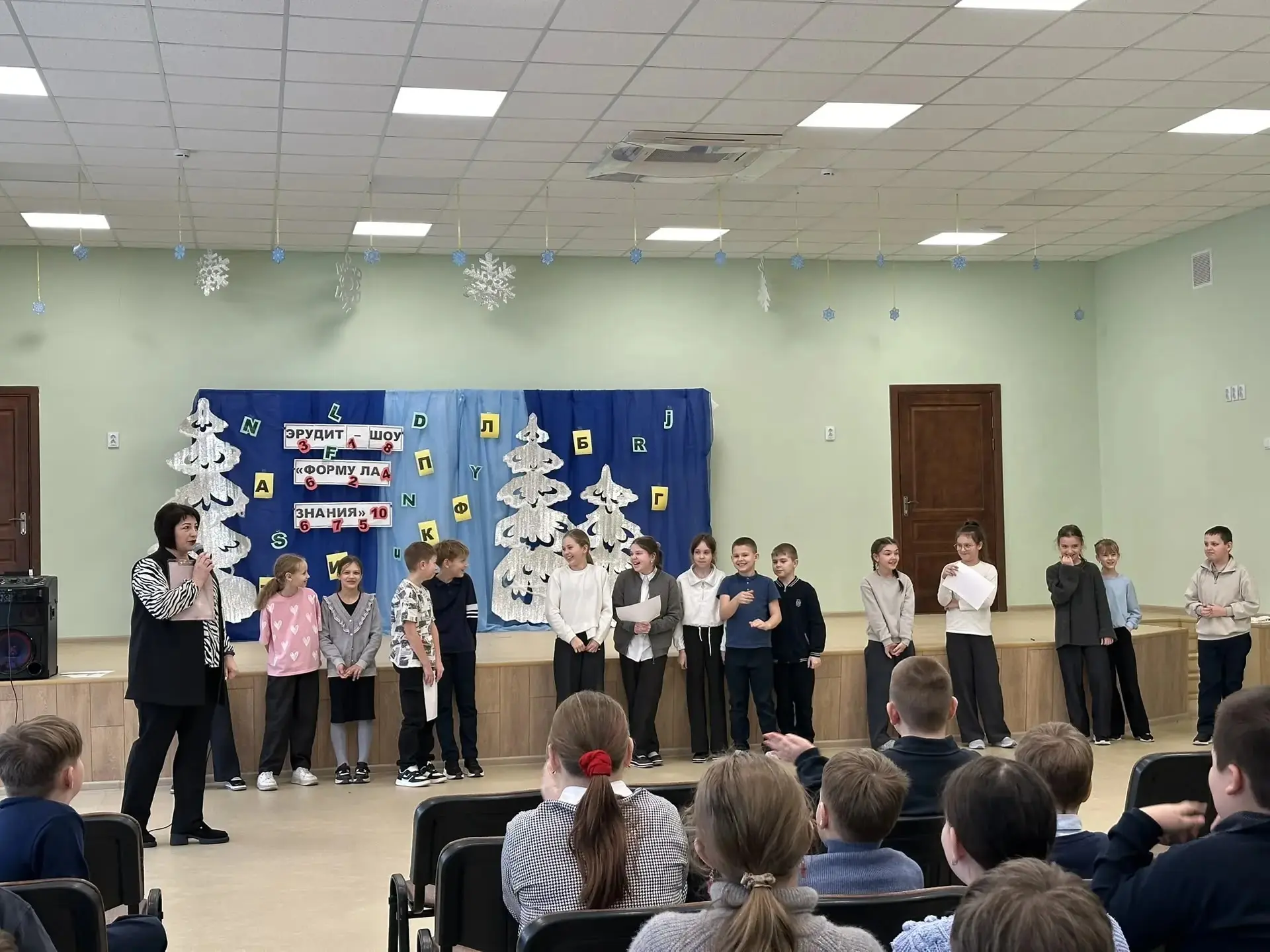 📝 И действительно, ученикам 3-х классов понадобились знания🤗 каждого☝ находящегося в зале, но не на уроке, а на мероприятии - Эрудит - шоу "Формула знания".