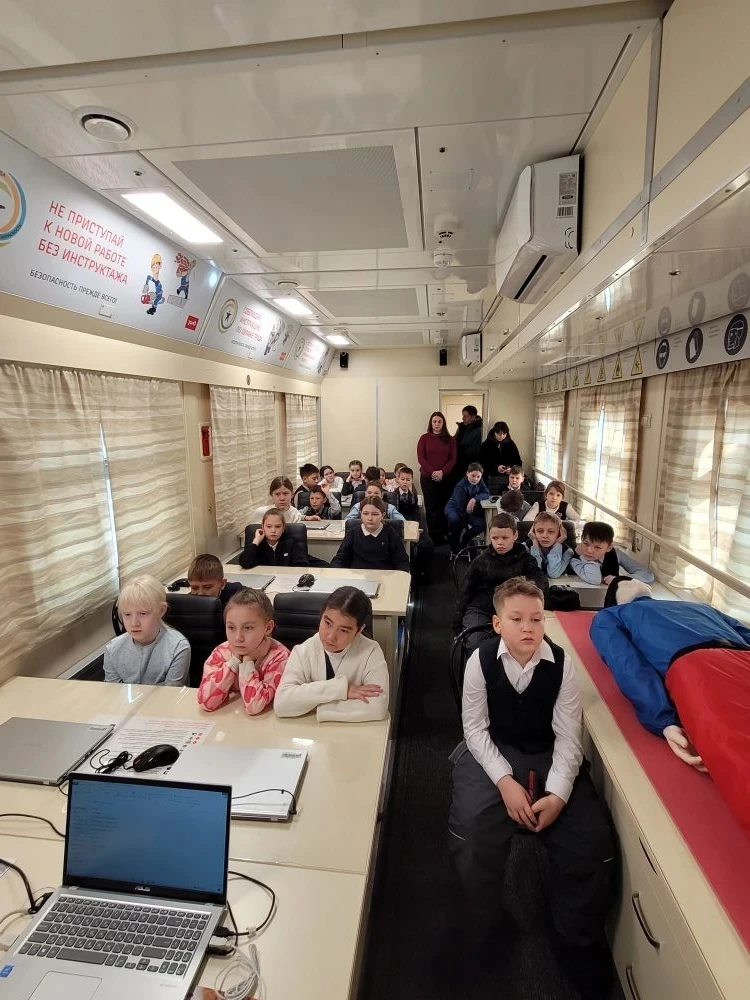 💯Ученики 3-4-х классов посетили специализированный вагон ОАО "РЖД", предназначенный для обучения сотрудников железной дороги технике безопасности и оказанию первой помощи.