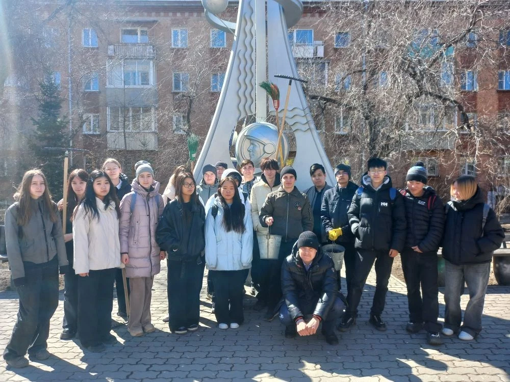 ✨Каждый год в канун Дня космонавтики ученики 65‑й школы приводят в порядок мемориал «Космос» — сегодня эстафету принял 10 «Б» класс!