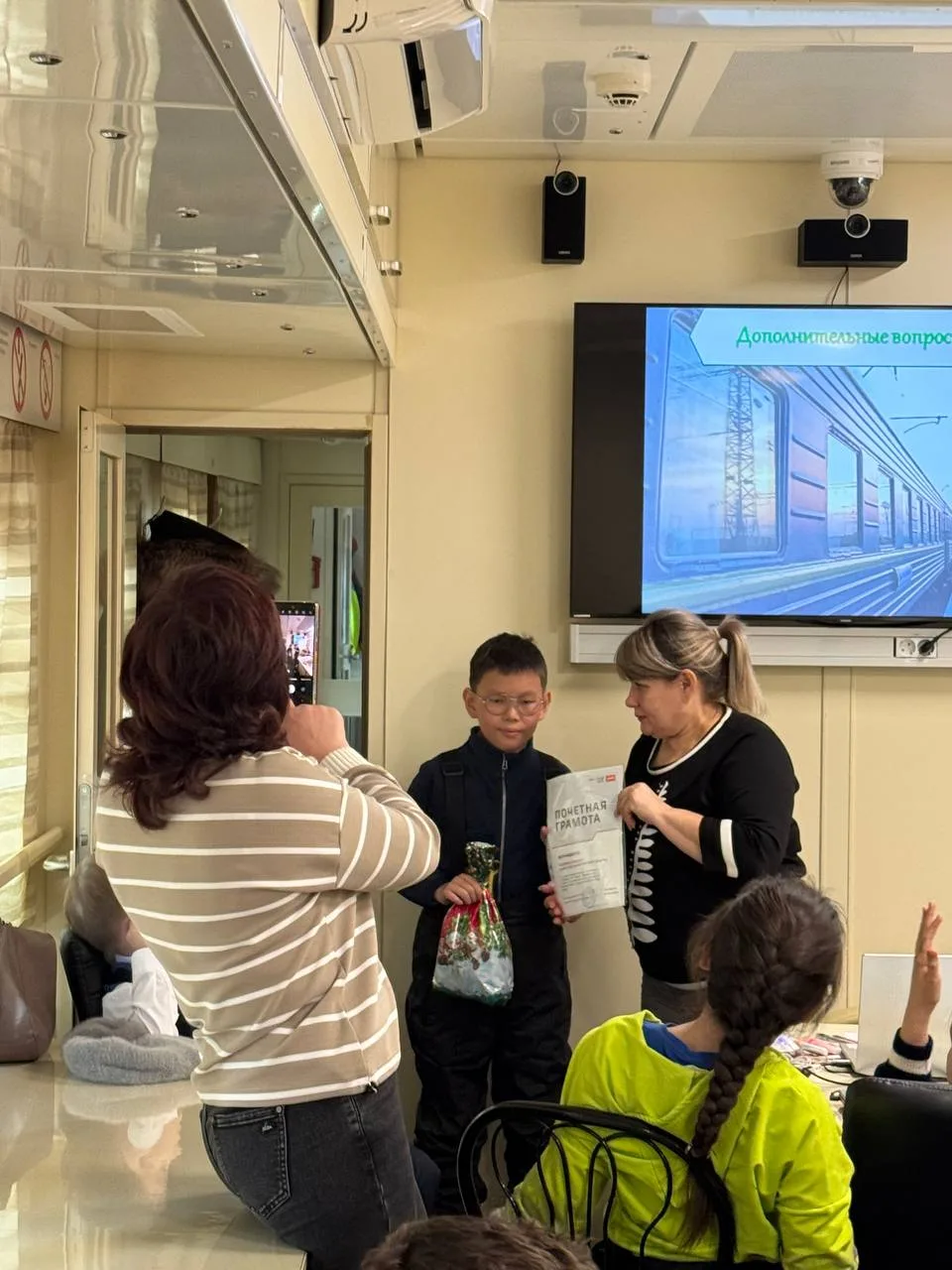📺Ребята прослушали информацию о правилах безопасного поведения на железнодорожных путях, посмотрели учебные фильмы и видеоролики, проверили знания в игре "Знатоки безопасности", ответили на вопросы викторины, а конце встречи получили памятные сувениры.
