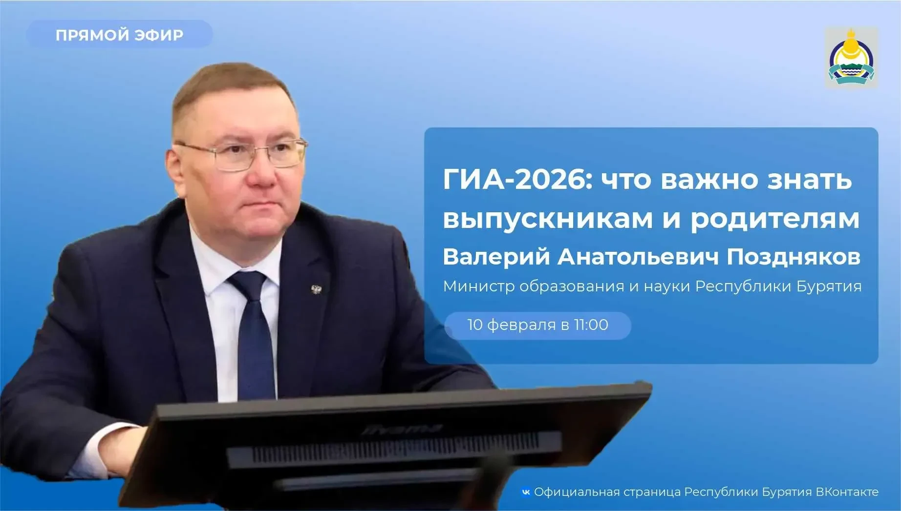 Приглашаю вас присоединиться к прямому эфиру в сообществе ВКонтакте Минобрнауки Бурятии 10 февраля в 11.00.