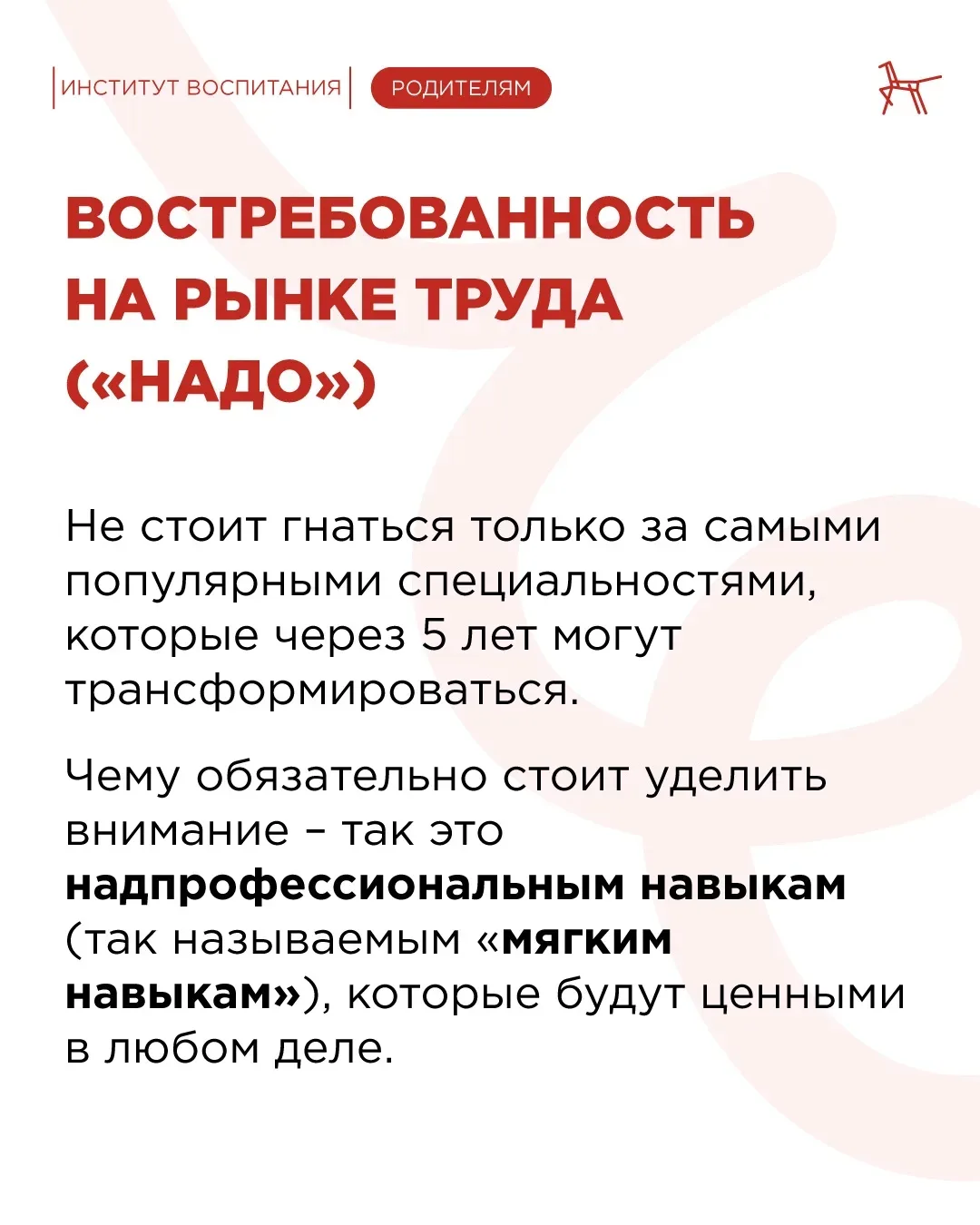 🫂 Школьники часто боятся принимать решение: им кажется, что они могут ошибиться и потом жалеть. В этот период ребёнка нужно поддержать и помочь разобраться в выборе профессионального пути, но не давить.