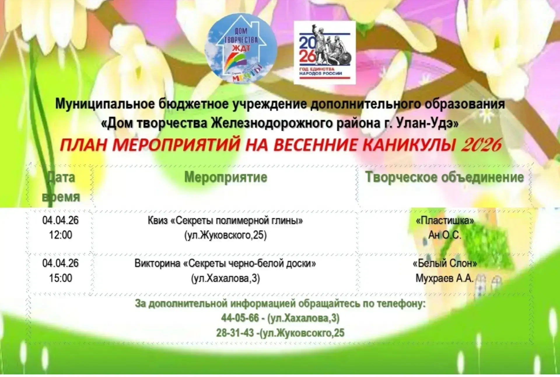 🚩Весенние каникулы продолжаются. А где провести выходные с пользой, вы сможете увидеть на афишах учреждений дополнительного образования🎨🤾♂️👨🎓