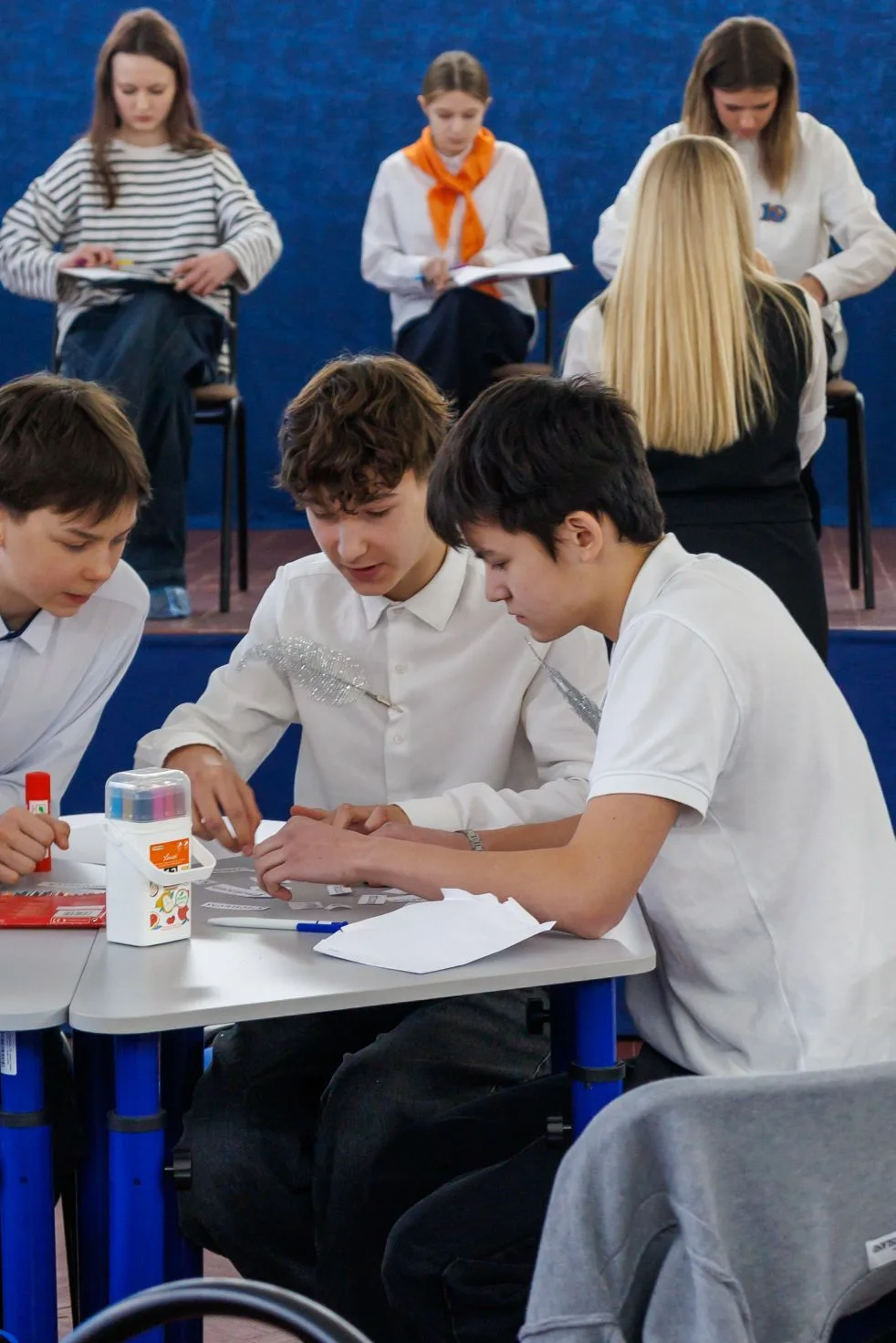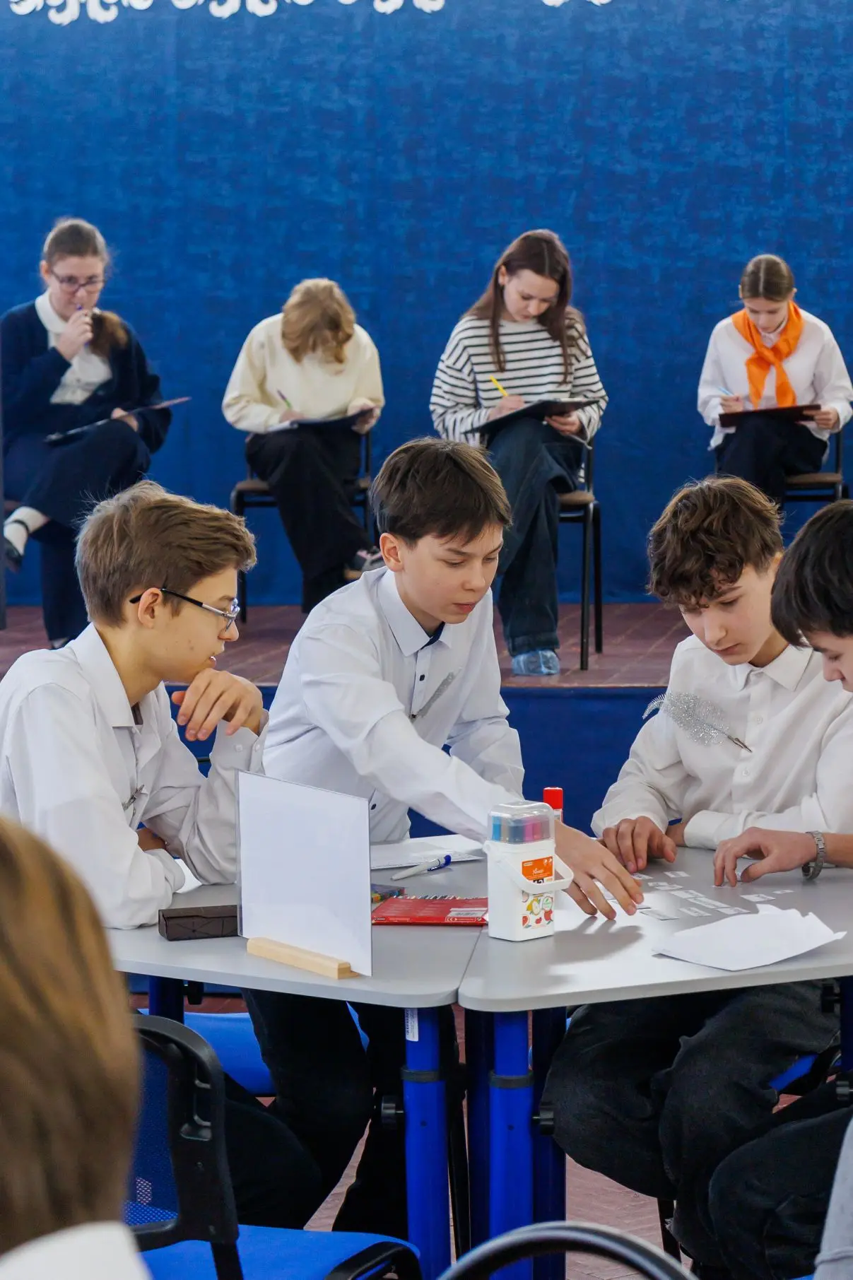 Ребята показали свои лучшие знания и умения в области математики 📐, физики 🧲, химии 🧪, биологии 🌿, информатики 💻, соревнуясь с командами из других школ города.
