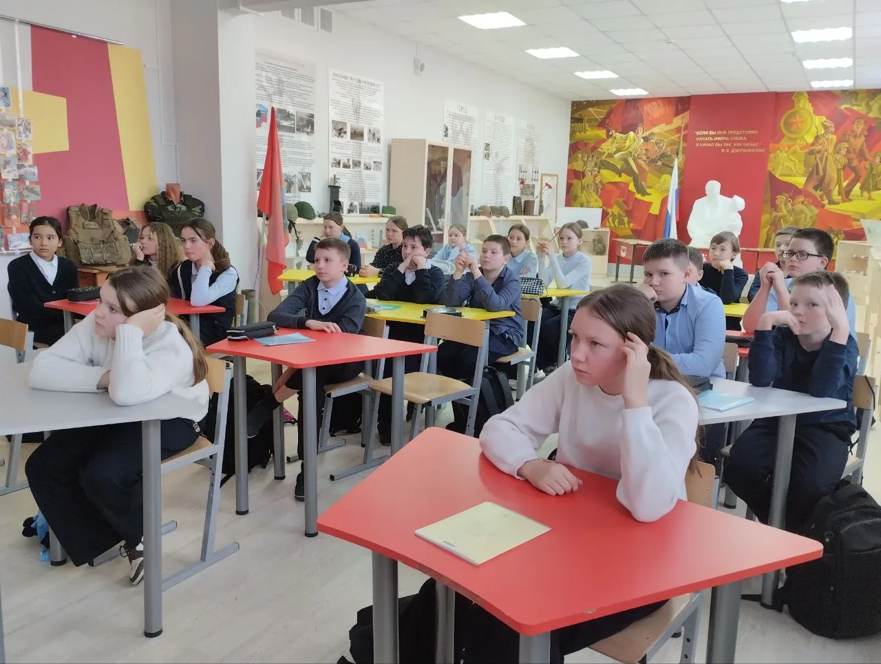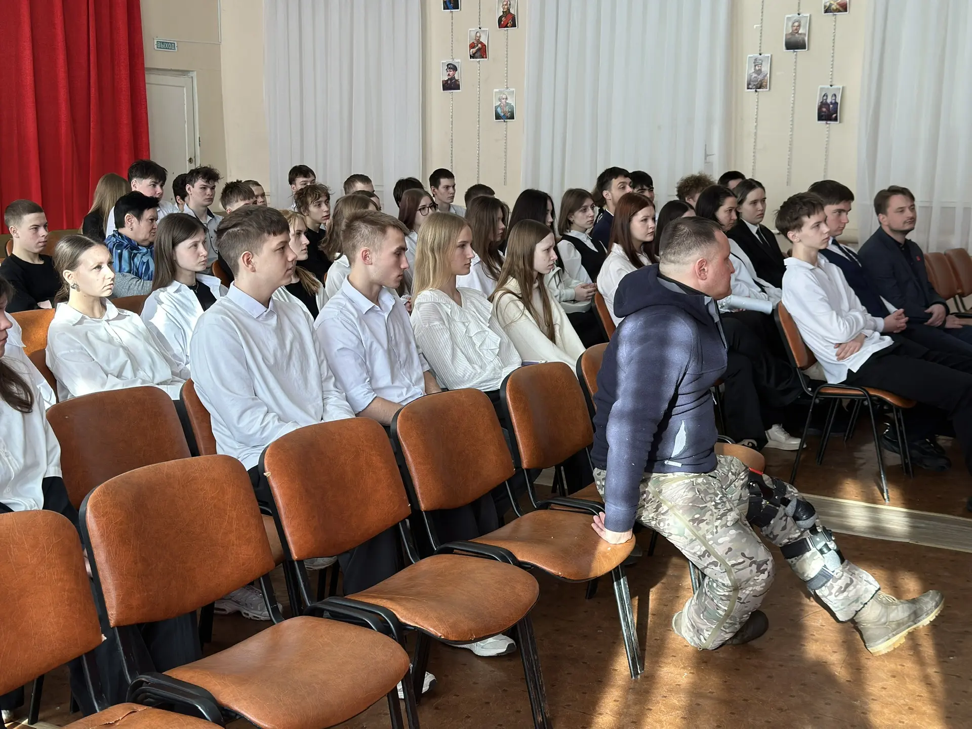 📨Александр поделился с ребятами актуальной информацией о ситуации на фронте, рассказав о непростых боевых действиях и самоотверженных задачах, которые стоят перед нашими военнослужащими. Его рассказ был не просто информативным, но и невероятно живым, достоверным, проиллюстрированным фрагментами с боевых заданий, моментами из жизни солдат, трогательными историями о товарищах и зарисовками военного времени.