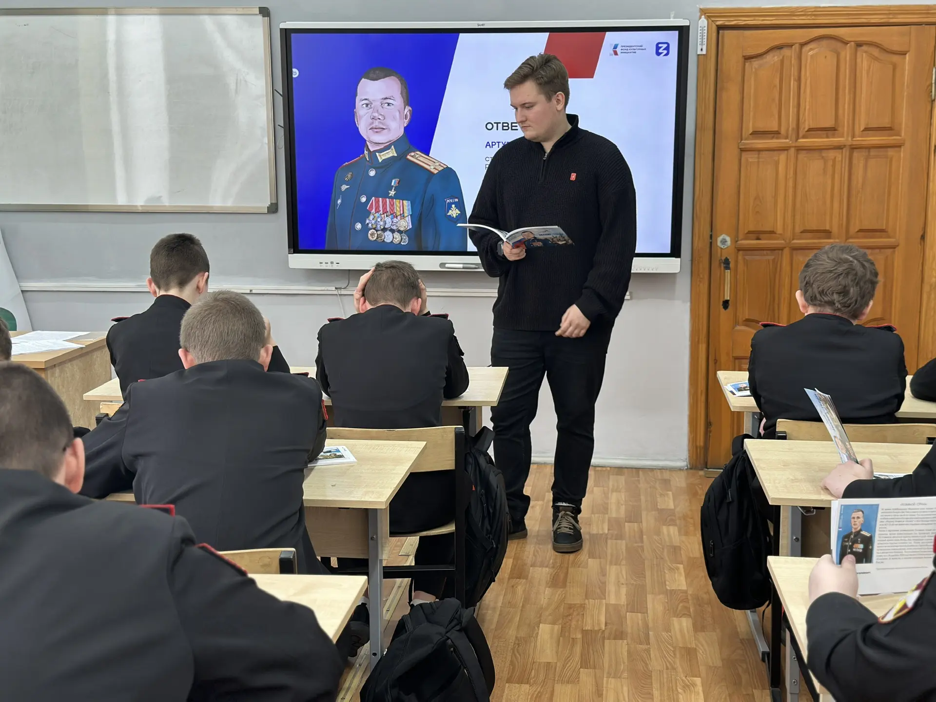 ✅ 20 января: Ученики 7Б класса познакомились с героем нашего времени — старшим лейтенантом Александром Глумовым, участником контртеррористической операции, служащим в подразделениях противовоздушной обороны Вооруженных Сил России.