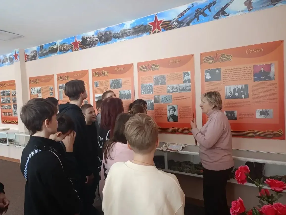Обучающиеся погрузились в историю школы √4 и ее выпускников — настоящих героев, чьи подвиги вдохновляют и сегодня! Увлекательное путешествие провели чуткие, эмоциональные, талантливые экскурсоводы Елена Геннадьевна и Виктория Ивановна. Ребята были вовлечены во времена героев, узнали о перенесённых ими испытаниях, узнали много интересного о событиях Великой Отечественной войны, о подвиге русского солдата, о мужестве наших прадедов. Дети с большим интересом слушали экскурсоводов, выполняли задания, рассматривали экспонаты. Среди них каски, гранаты, фляжки, пушечные гильзы, шинель, личные вещи участников войны, переданные их родственниками.