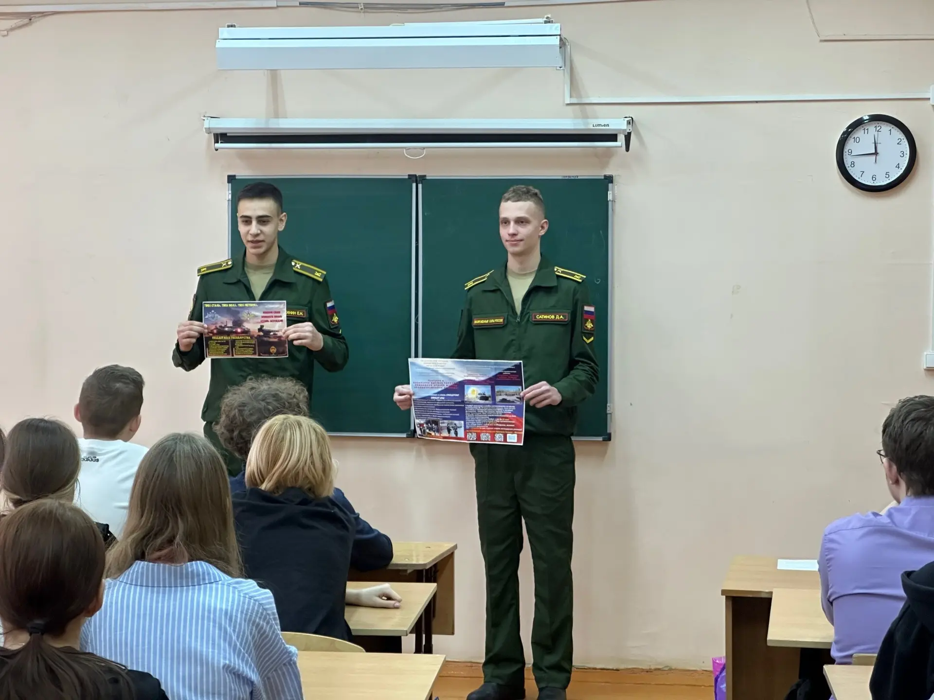 Ученики 9-11 классов встретились с курсантами Казанского высшего танкового командного ордена Жукова, краснознаменного училища. Наши выпускники – курсанты в ходе беседы рассказали об условиях поступления в высшее военное танковое училище, интересно и эмоционально поведал о жизни военнослужащих, обратил внимание обучающихся на то, что хорошая учеба, физическая подготовка, самодисциплина и целеустремленность – важные факторы успешного поступления. Встреча прошла в тёплой, дружеской атмосфере. Данные встречи очень важны для подрастающего поколения, укрепляют патриотизм и любовь к Родине.