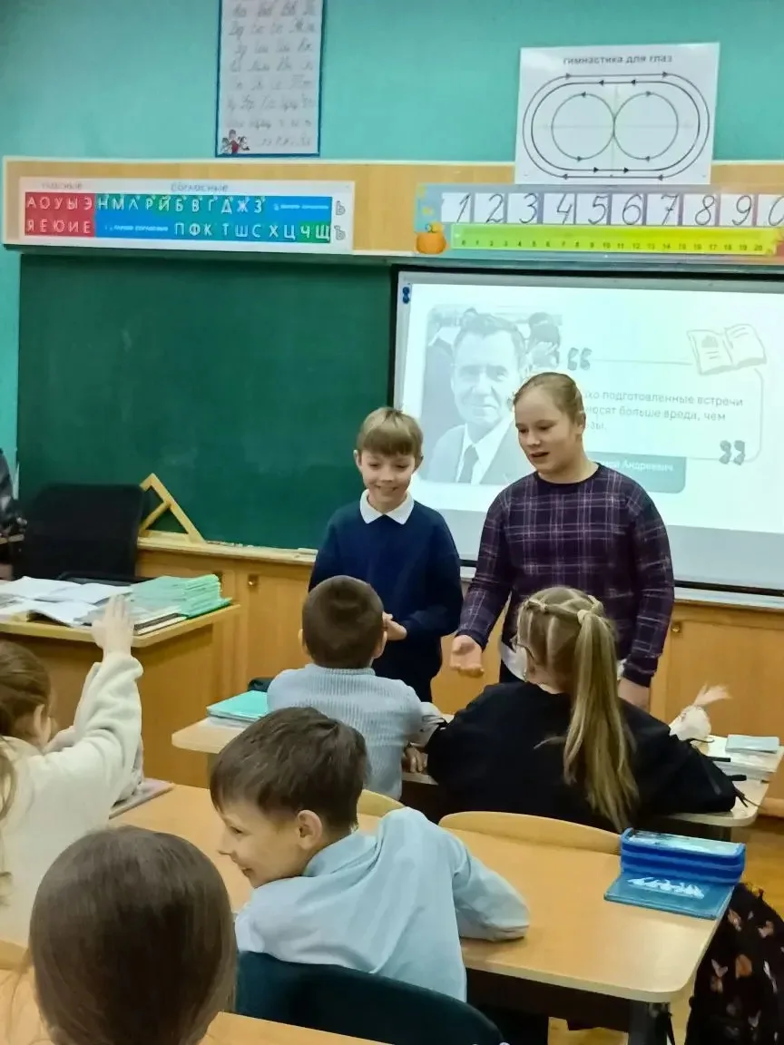 Сегодня, 2 февраля, в школе состоялся очередной урок из цикла «Разговоры о важном». Занятие, приуроченное к Дню российской науки, посвящен исследовательской деятельности. Учащиеся говорили о том, что само знание безгранично. Каждое открытие рождает новые вопросы, каждая решённая задача открывает новые горизонты. Прямо как у Михаила Ломоносова, который был одновременно химиком, физиком, поэтом и астрономом — его любознательность не знала границ.