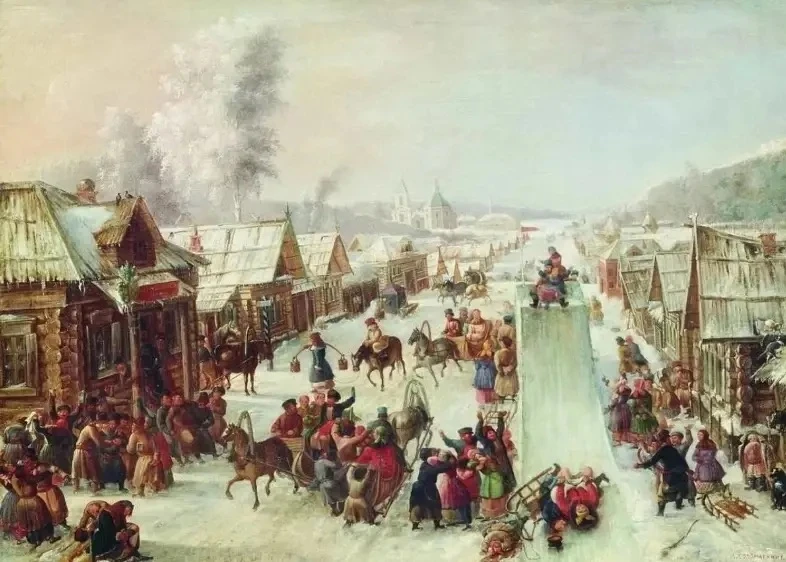 Зима с весной встречаются, и люди отправляются на Масленичные гуляния.