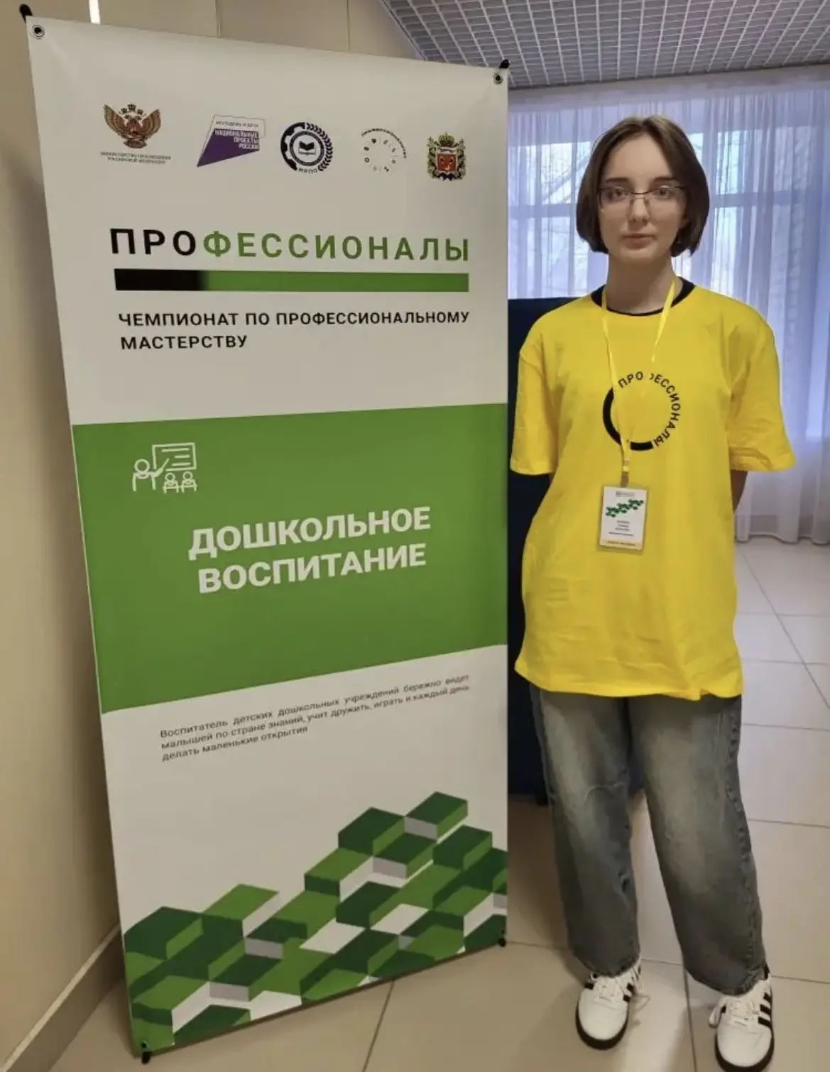 София выступала в компетенции «Дошкольное воспитание (юниоры)». Это серьезное испытание, где нужно показать не только теорию, но и настоящие педагогические навыки.