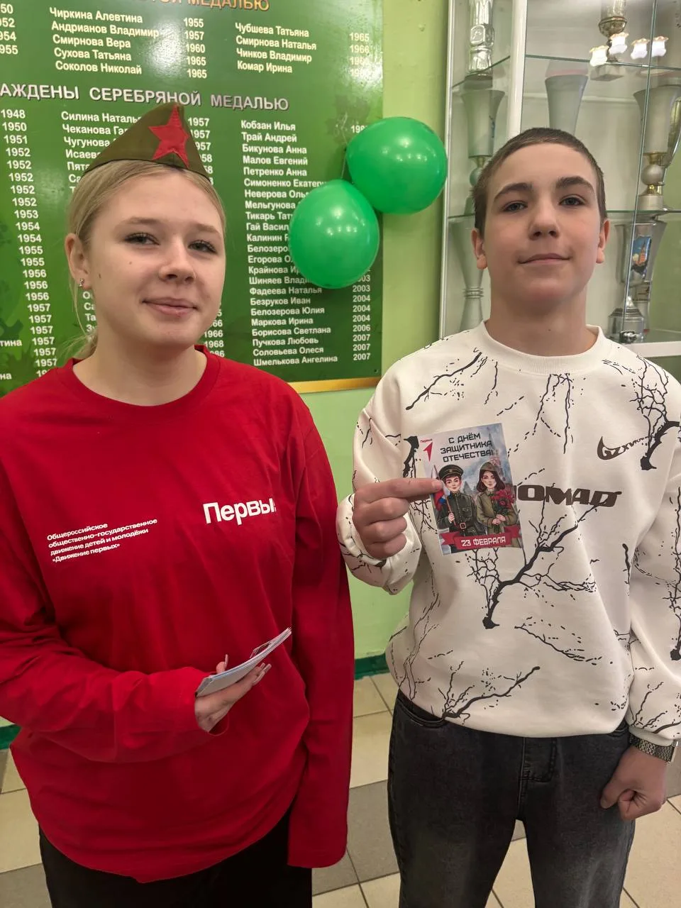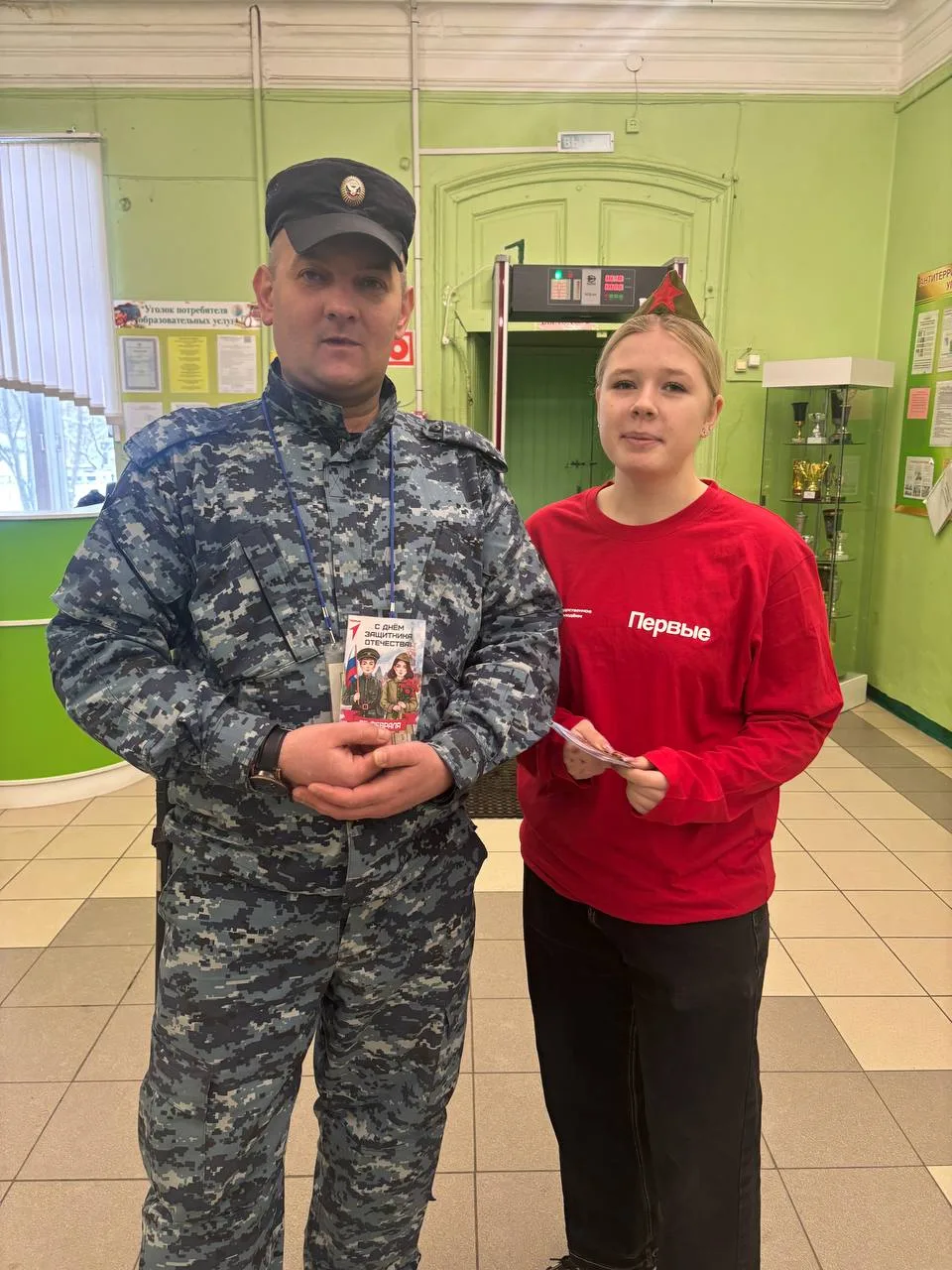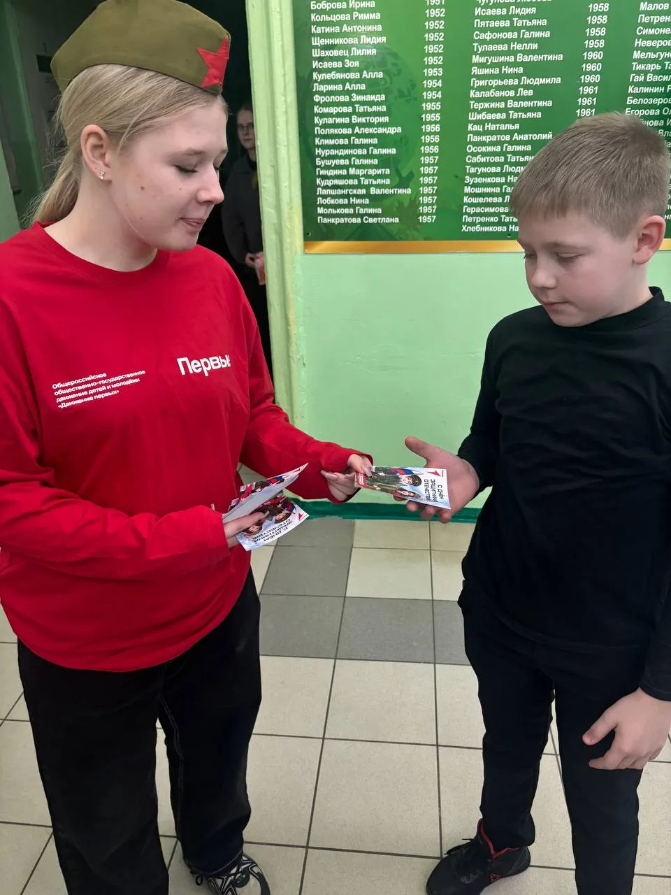 Также в фойе школы прошла яркая акция "Поздравь защитника": каждый мог выразить свою благодарность защитникам нашего мира и спокойствия.