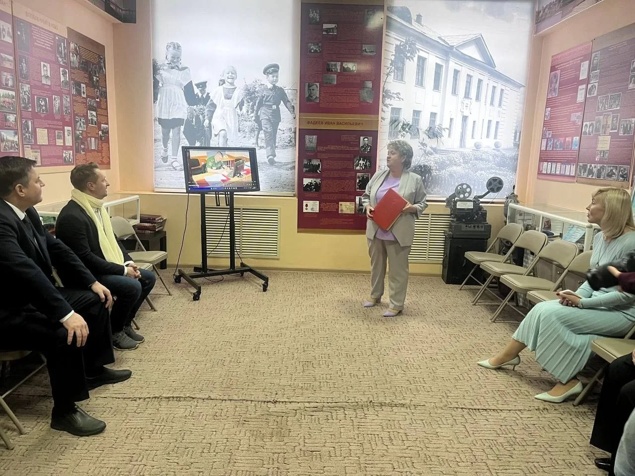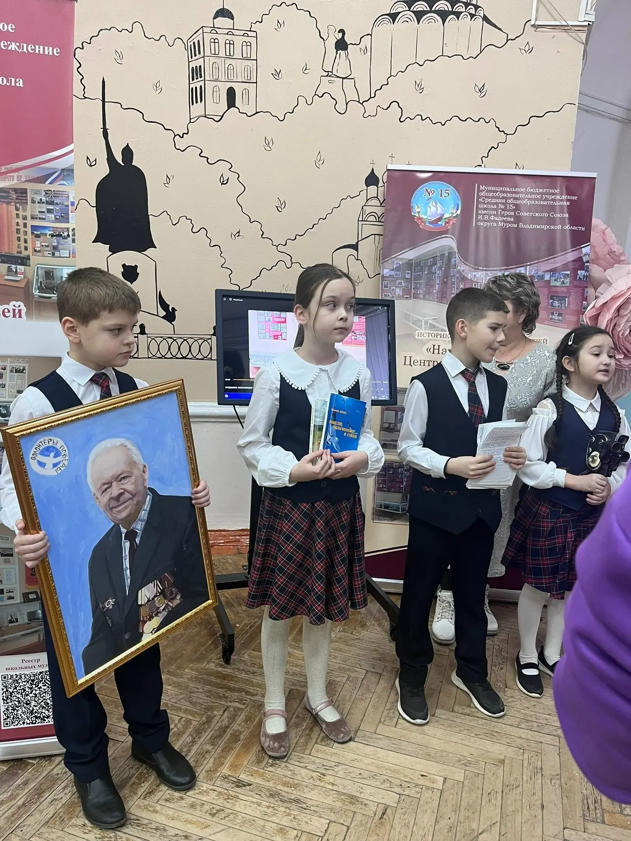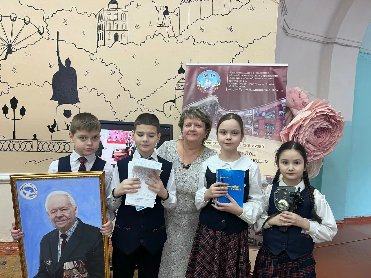 В интерактивной форме живо, эмоционально и интересно рассказали о почëтном жителей города Мурома Е. В. Лебедеве. Ведь в дар музея остались его личные вещи: сборники стихов, рукописные тексты, видеокамера, портрет, подаренный волонтëрами Волгограда.