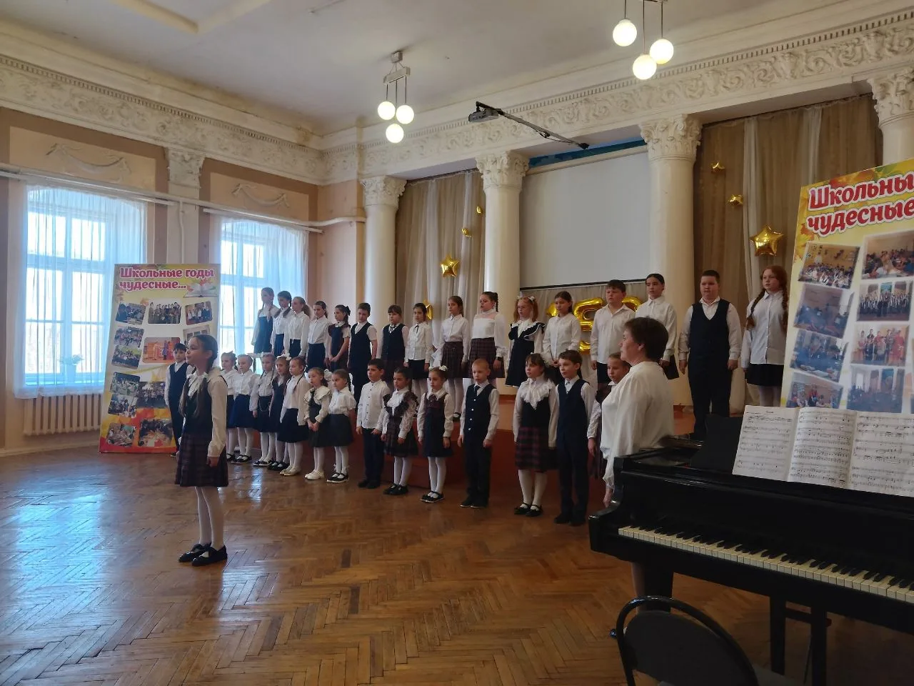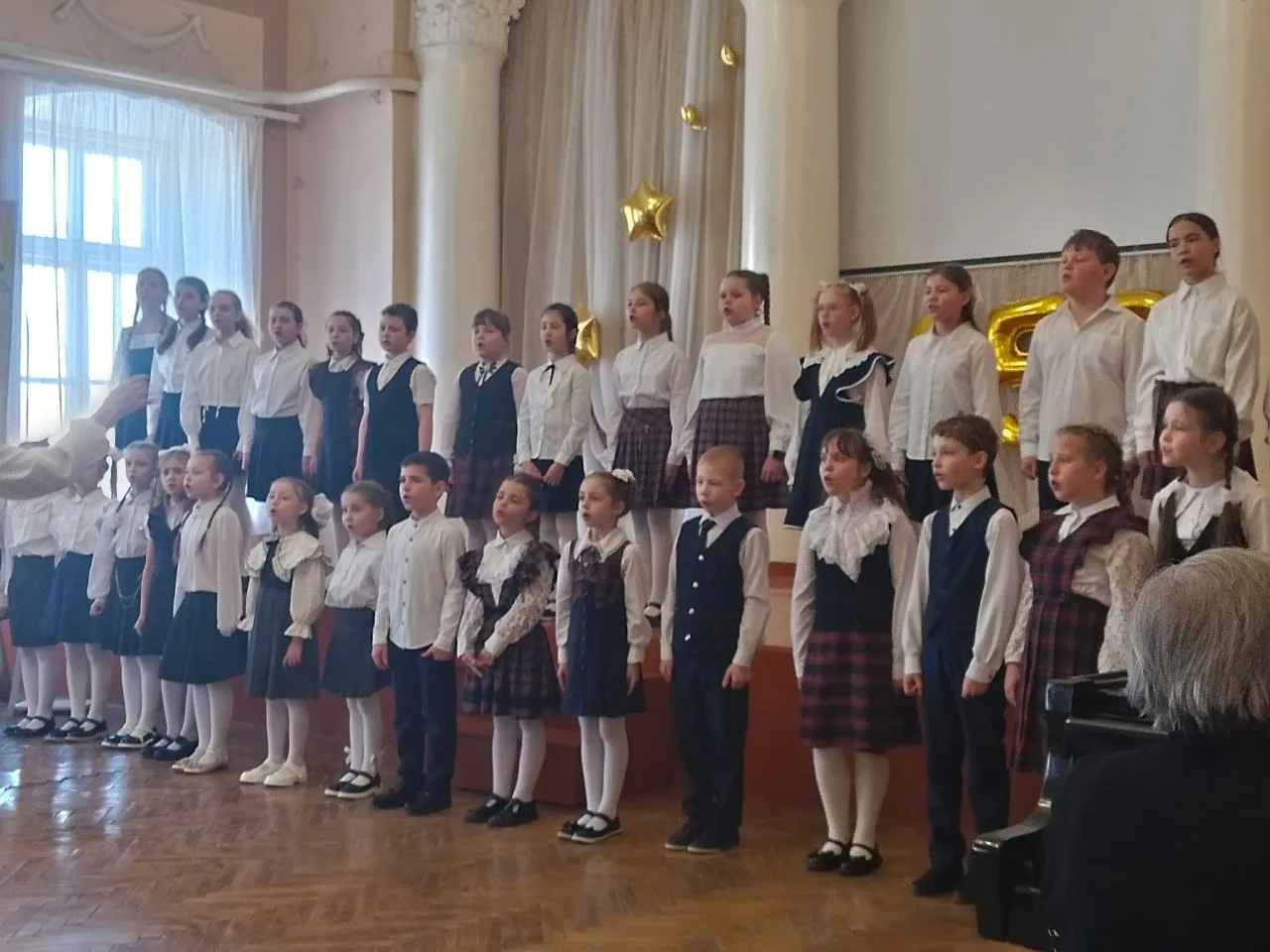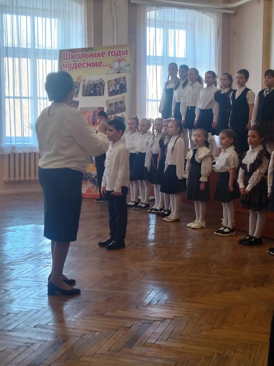 Полным ходом идёт окружной Фестиваль искусств. Смотр школьных хоров. Нашу школу представлял младший хор. Спели великолепно! Голоса наших ребят вызвали положительные эмоции. Зрители поддерживали выступление дружными аплодисментами. Ждём официальных итогов